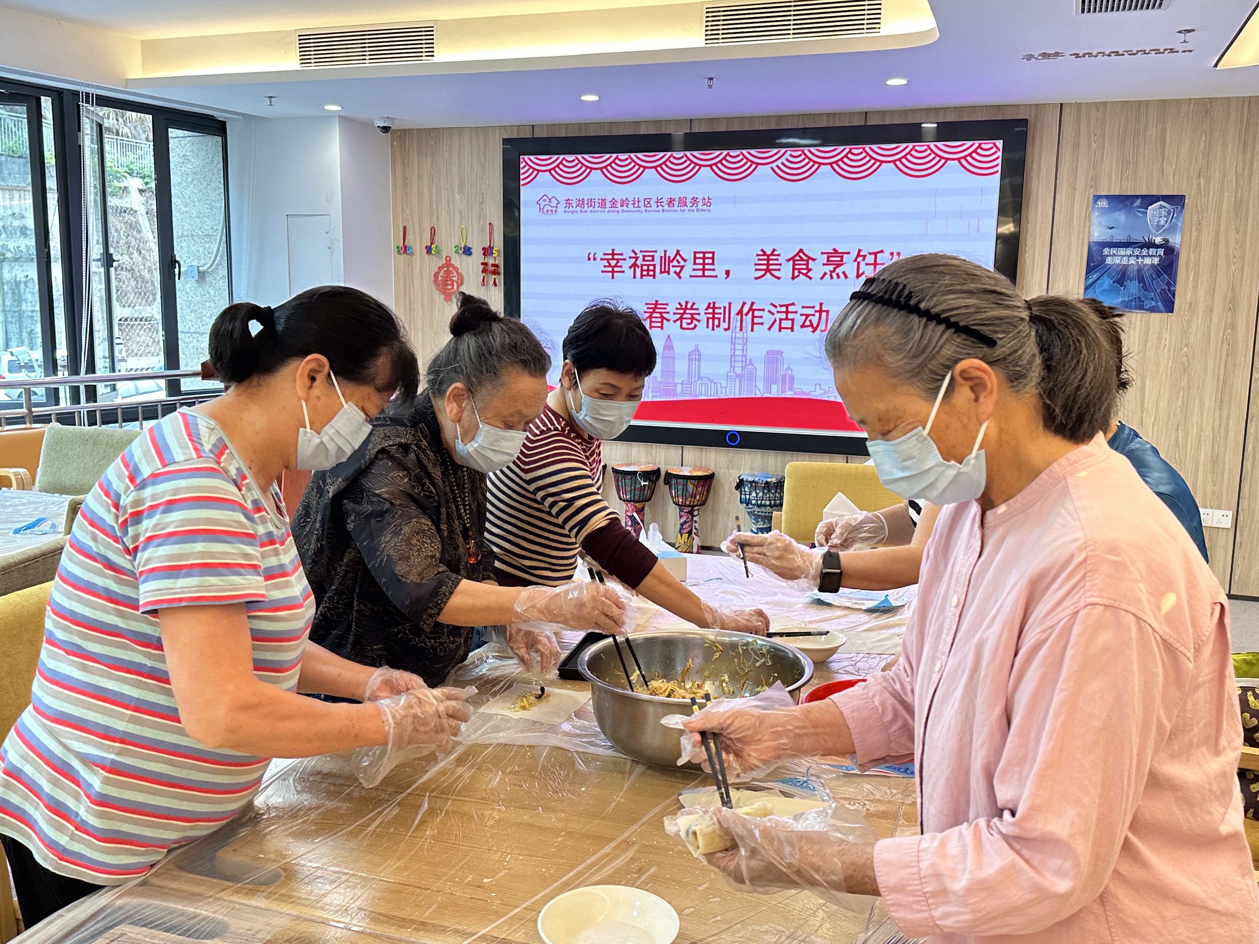 罗湖区家园网讯:2025年4月27日下午,金岭社区党委联动长者服务站开展“幸福岭里,美食烹饪”春卷制作活动。