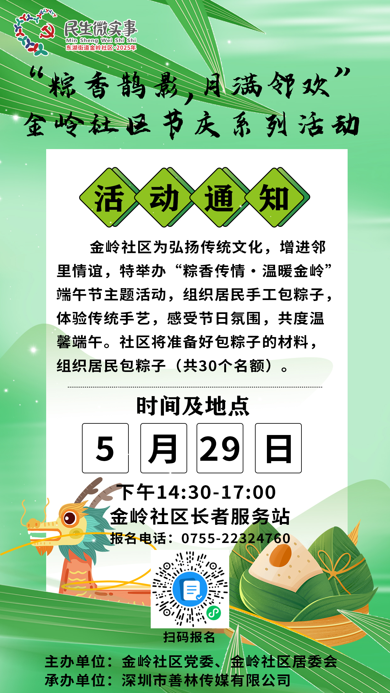 罗湖区家园网讯:【民生微实事】“粽香鹊影,月满邻欢”金岭社区节庆系列活动-金岭社区端午节活动通知