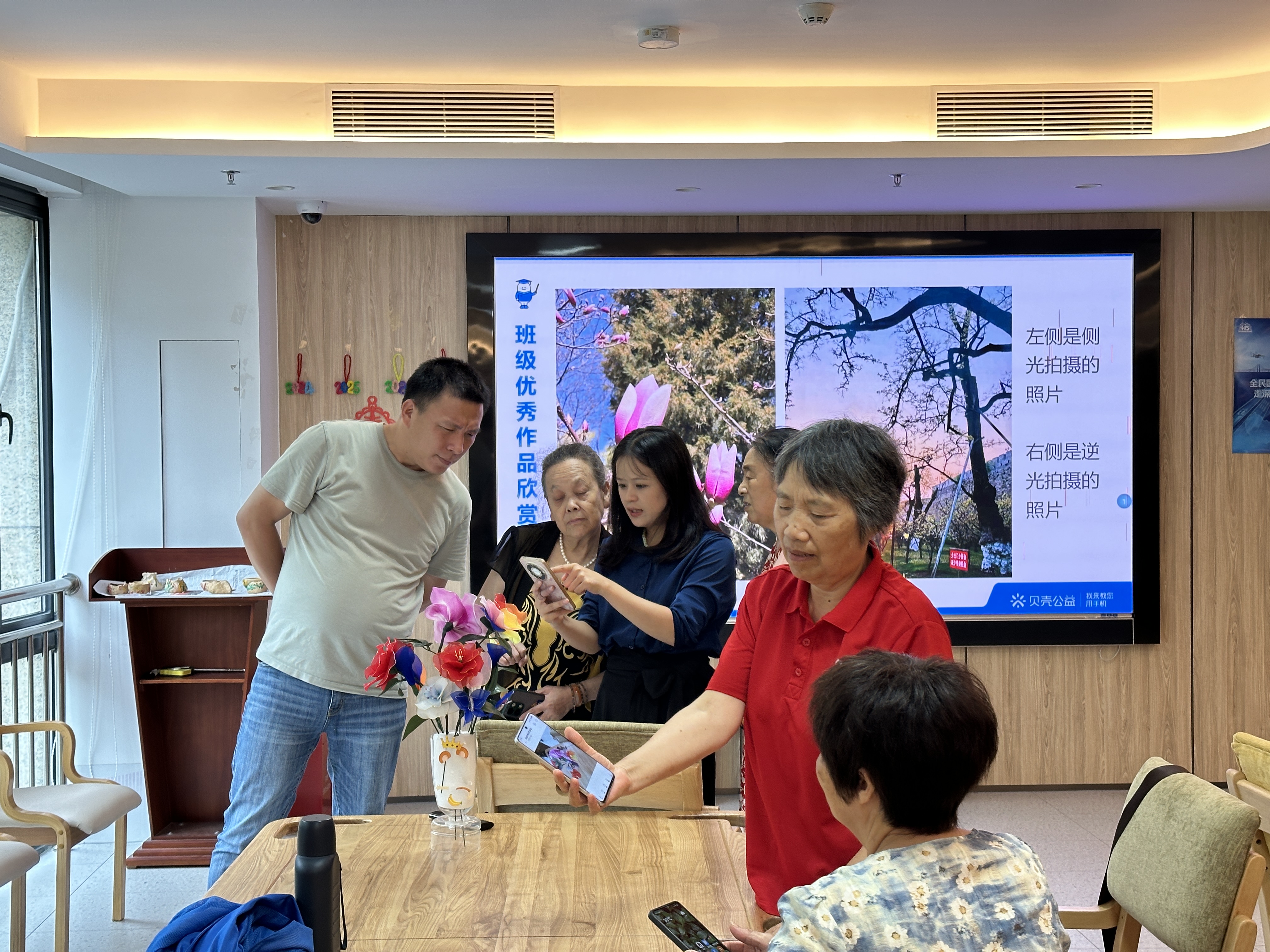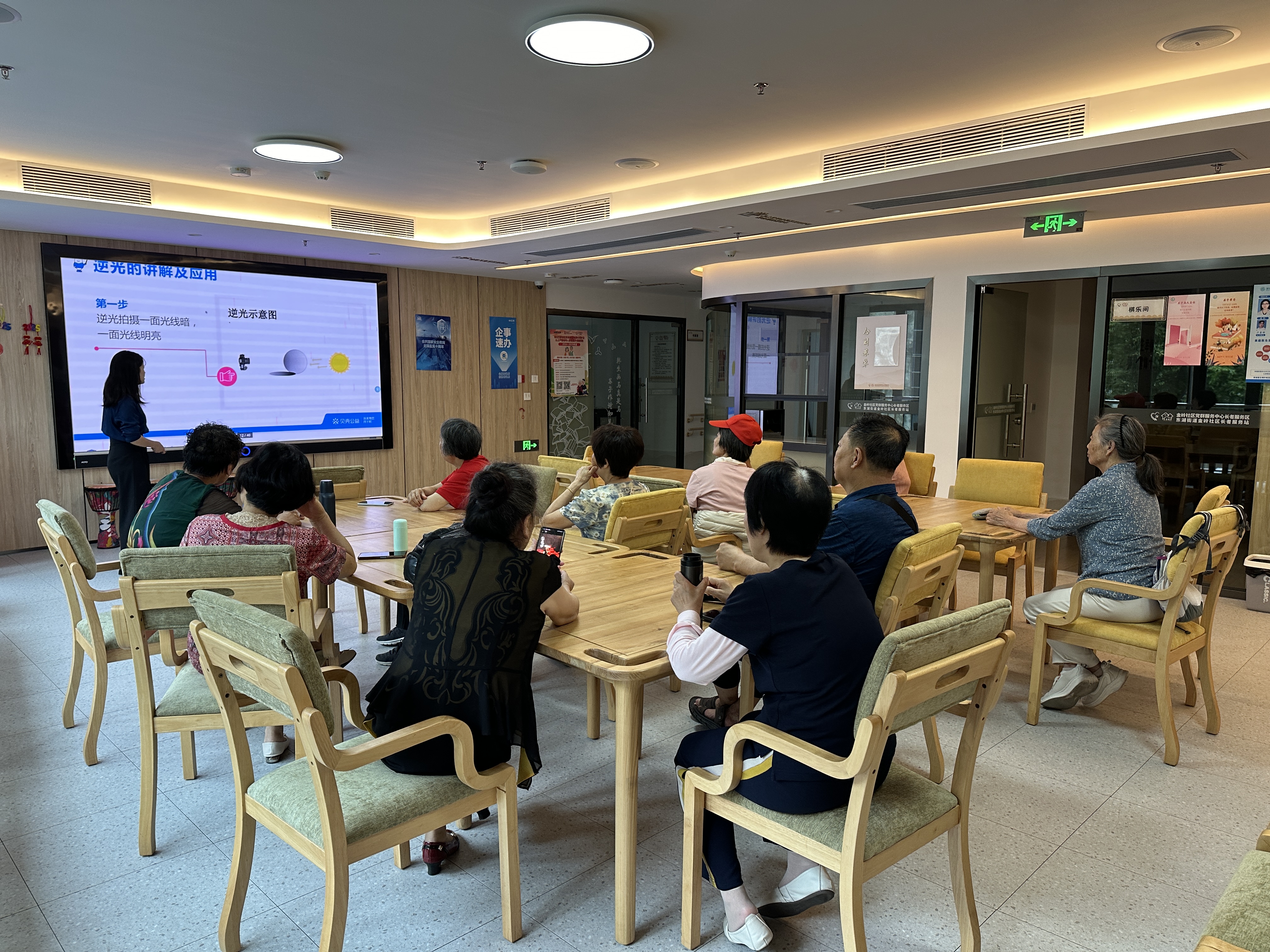 罗湖区家园网讯:2025年5月20日下午,金岭社区长者服务站开展“机”智生活,乐享银龄——长者手机课堂学习活动(光线的讲解和应用)。