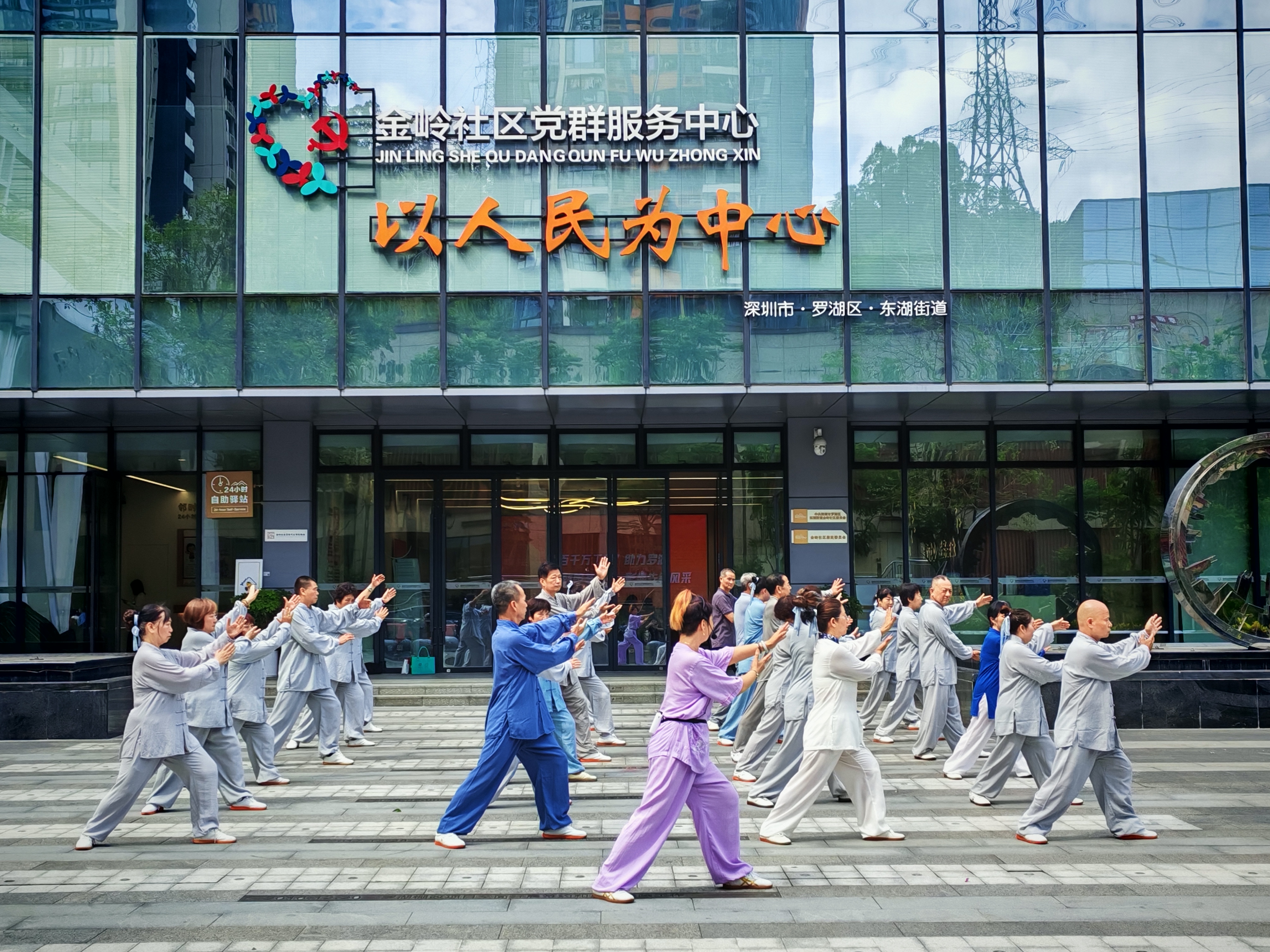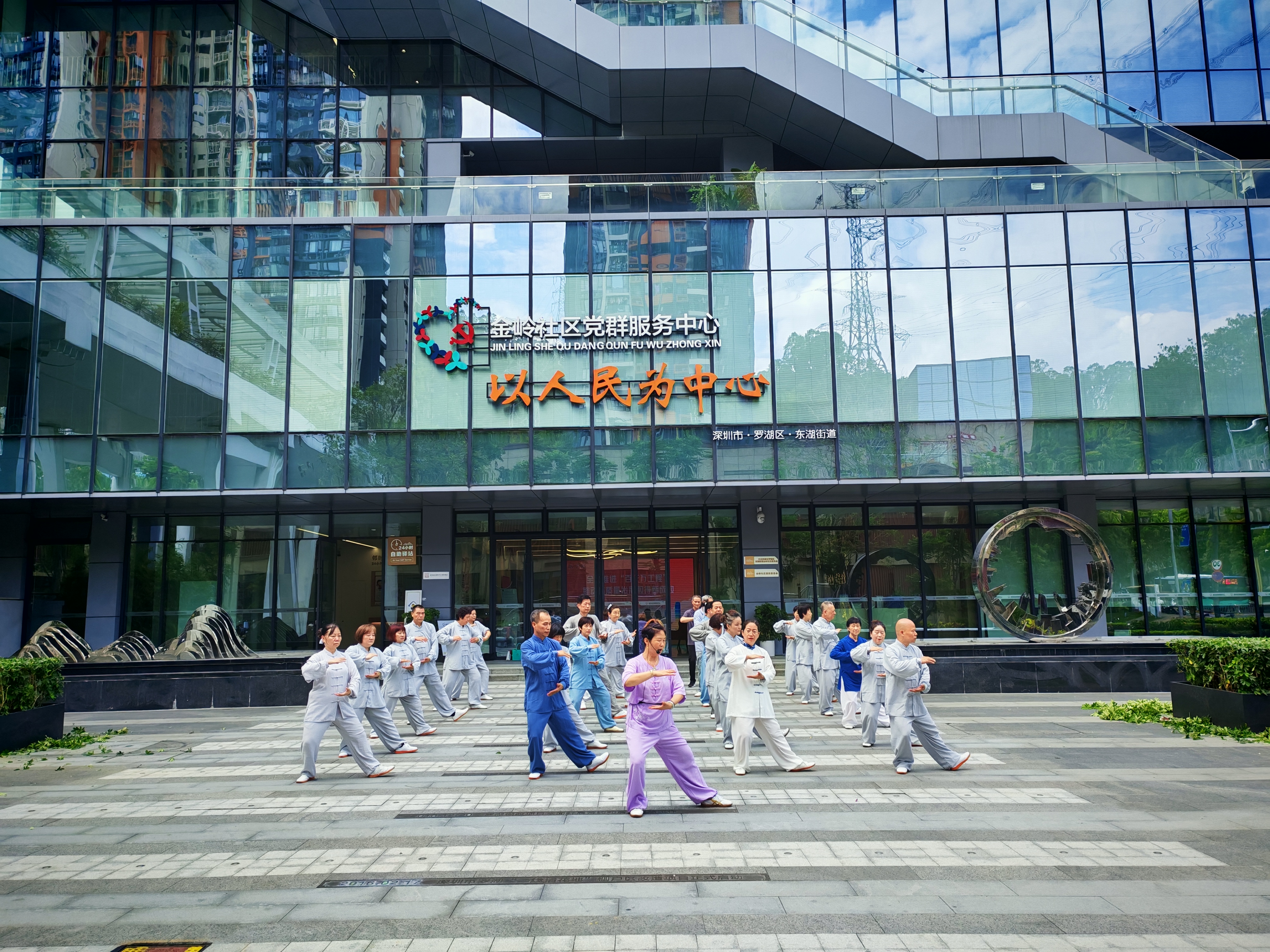 罗湖区家园网讯:2025年5月20日上午,金岭社区老年大学太极学习班表演。