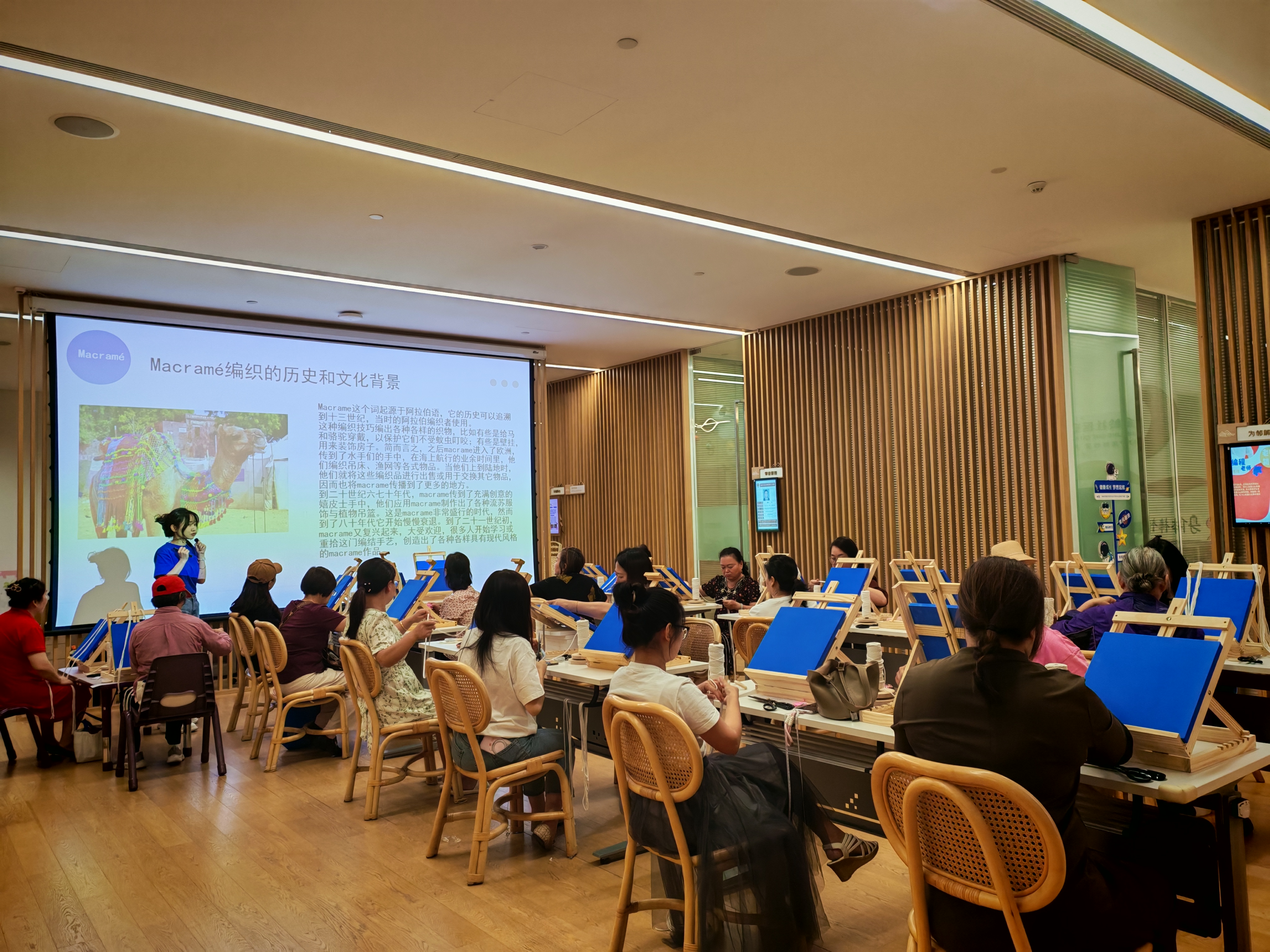 活动伊始,老师为大家介绍了Macramé编织艺术的起源与发展,并展示了精美的壁挂网兜花篮成品,激发了学员们的浓厚兴趣。随后,老师详细讲解了编织工具的使用方法,并手把手教授平结、螺旋结等基础绳结技法。在老师指导下,学员们从生疏到熟练,用棉绳编织出各具特色的壁挂网兜花篮。活动现场充满欢声笑语,大家互相交流编织心得,共同感受手工创作的乐趣。