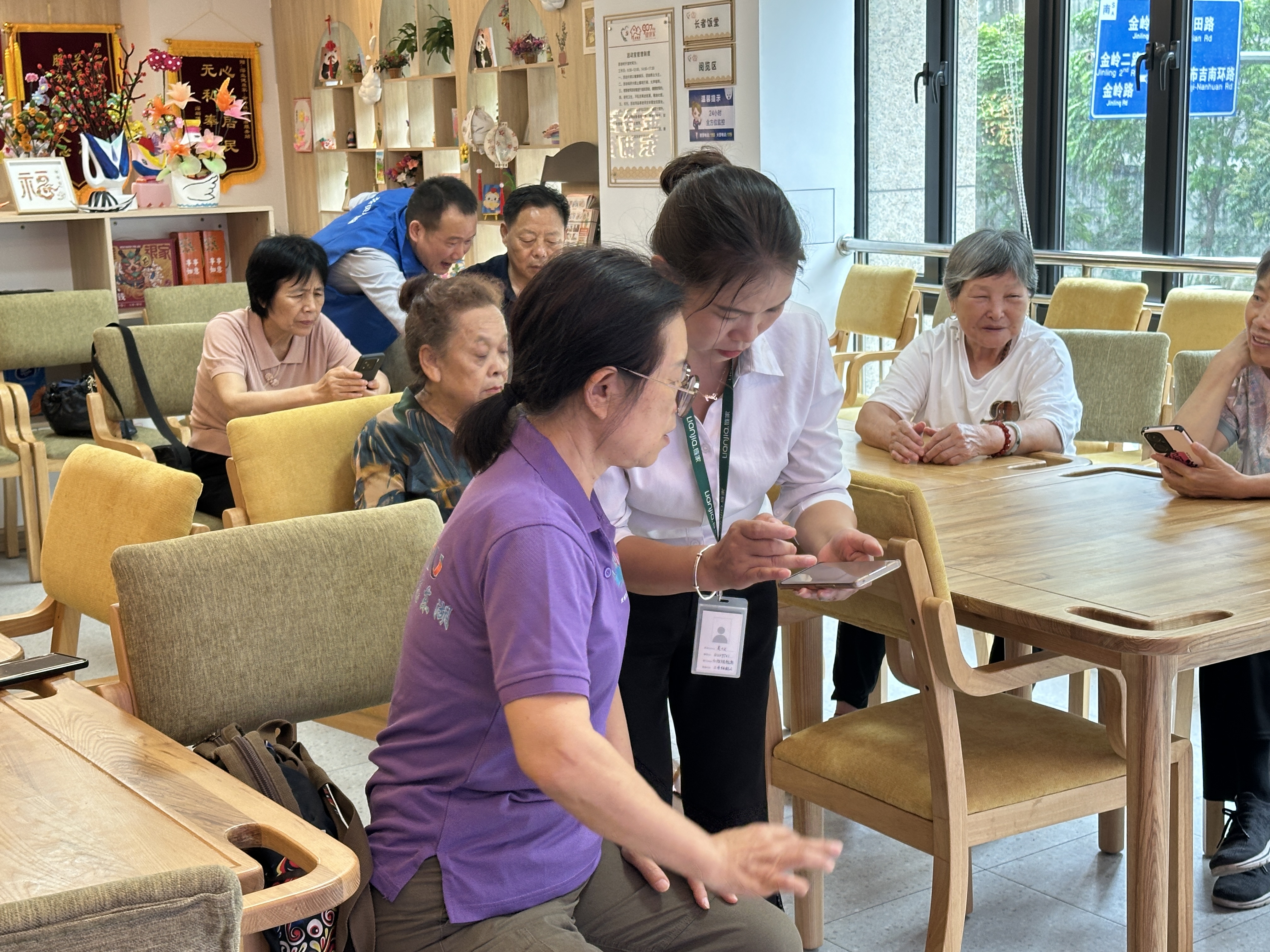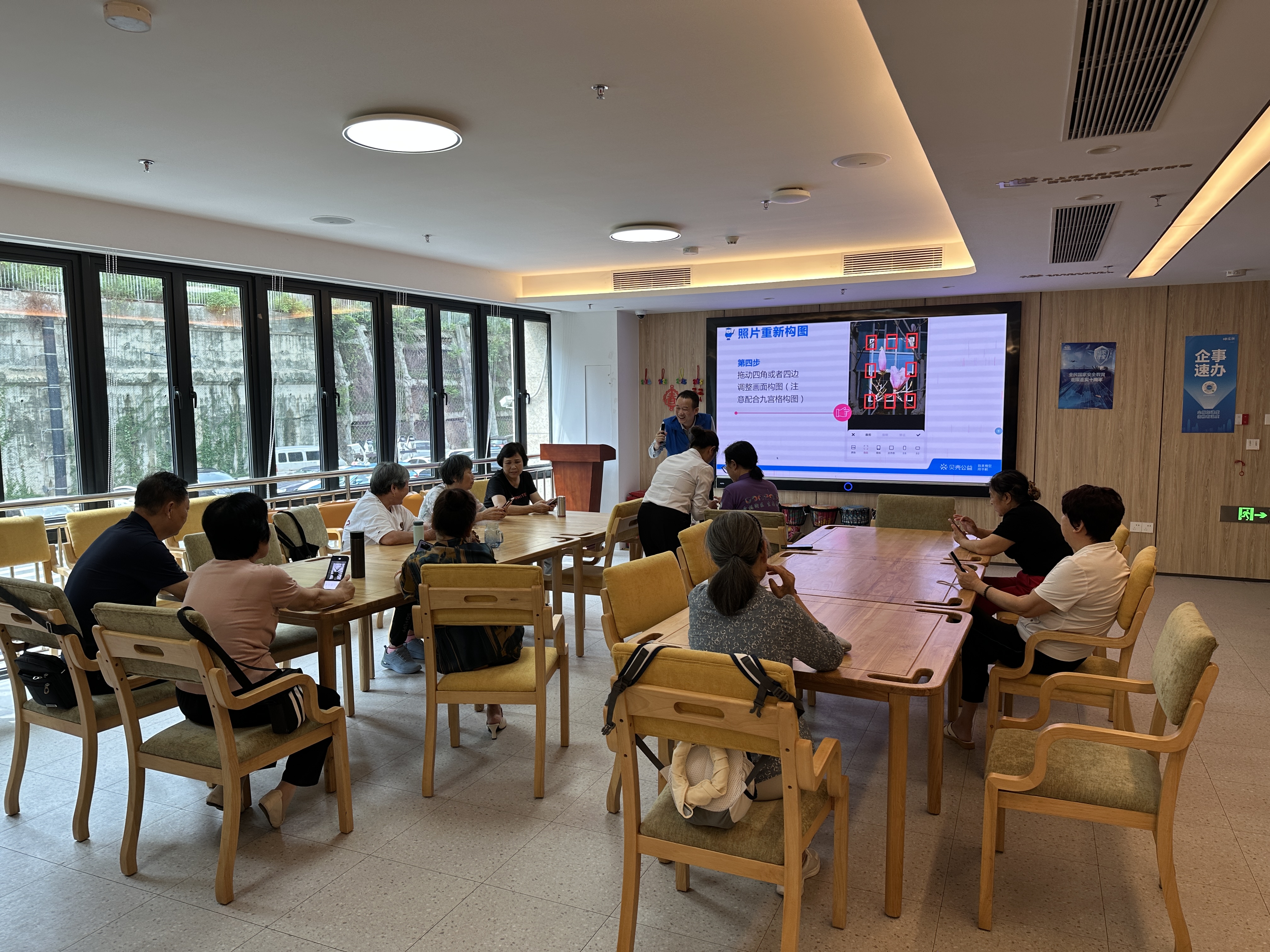 罗湖区家园网讯:2025年6月3日下午,金岭社区长者服务站开展“机”智生活,乐享银龄——长者手机课堂学习活动(美图秀秀应用)。