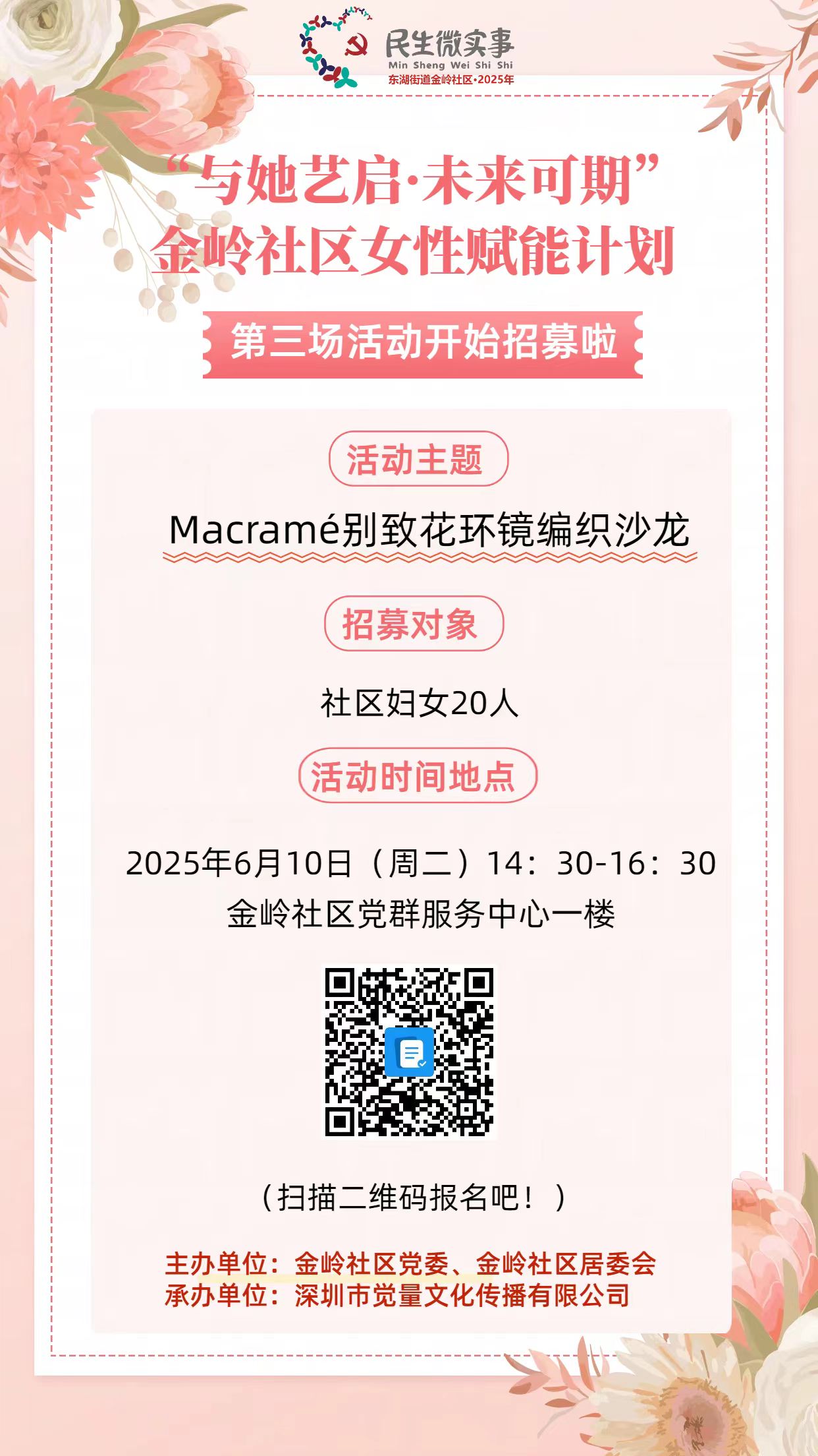 罗湖区家园网讯:【民生微实事】“与她艺启·未来可期”金岭社区女性赋能计划—第三场活动通知