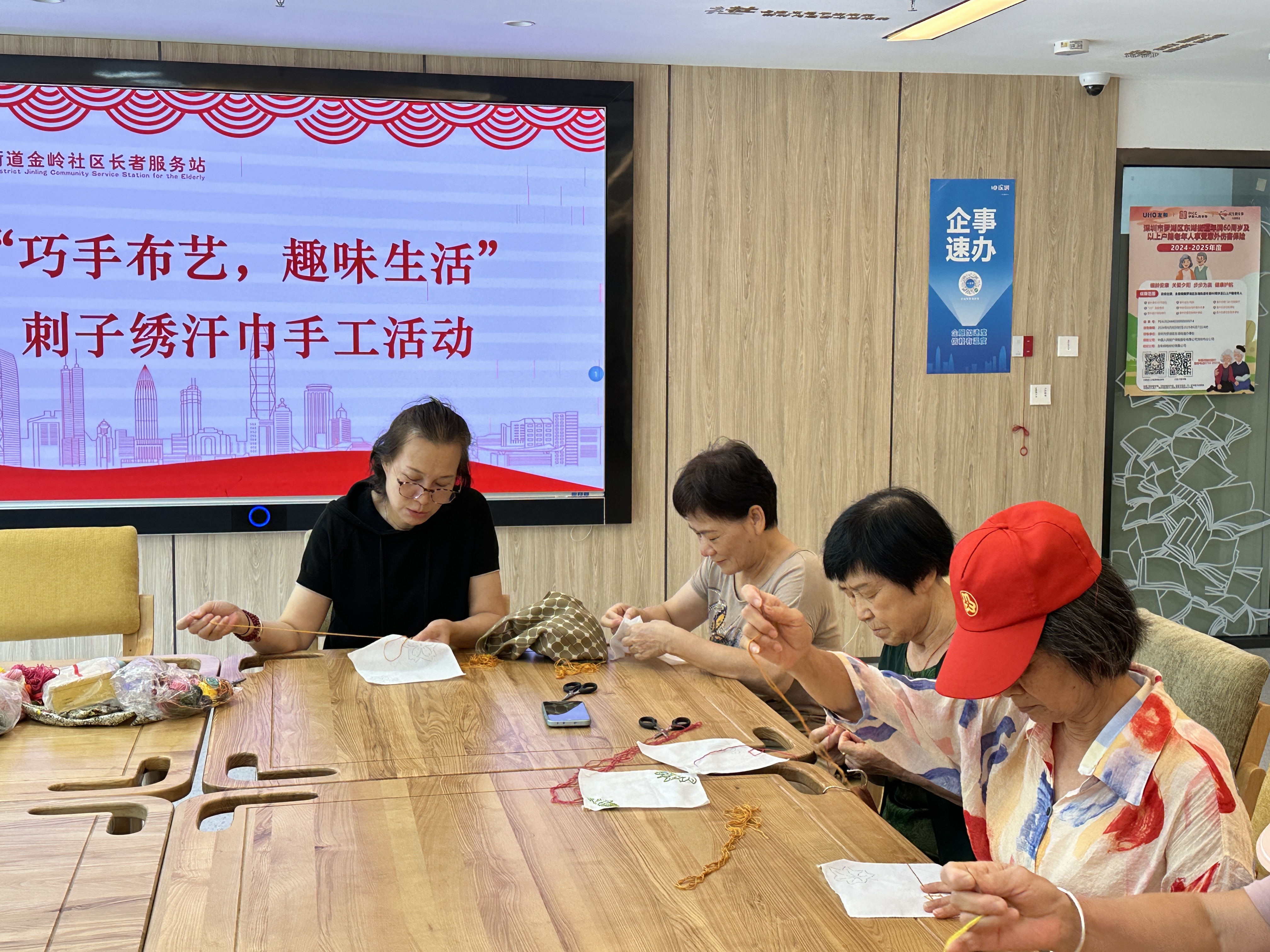 罗湖区家园网讯:2025年7月14日下午,金岭社区党委联动长者服务站开展“巧手布艺,趣味生活”刺子绣汗巾手工活动。
