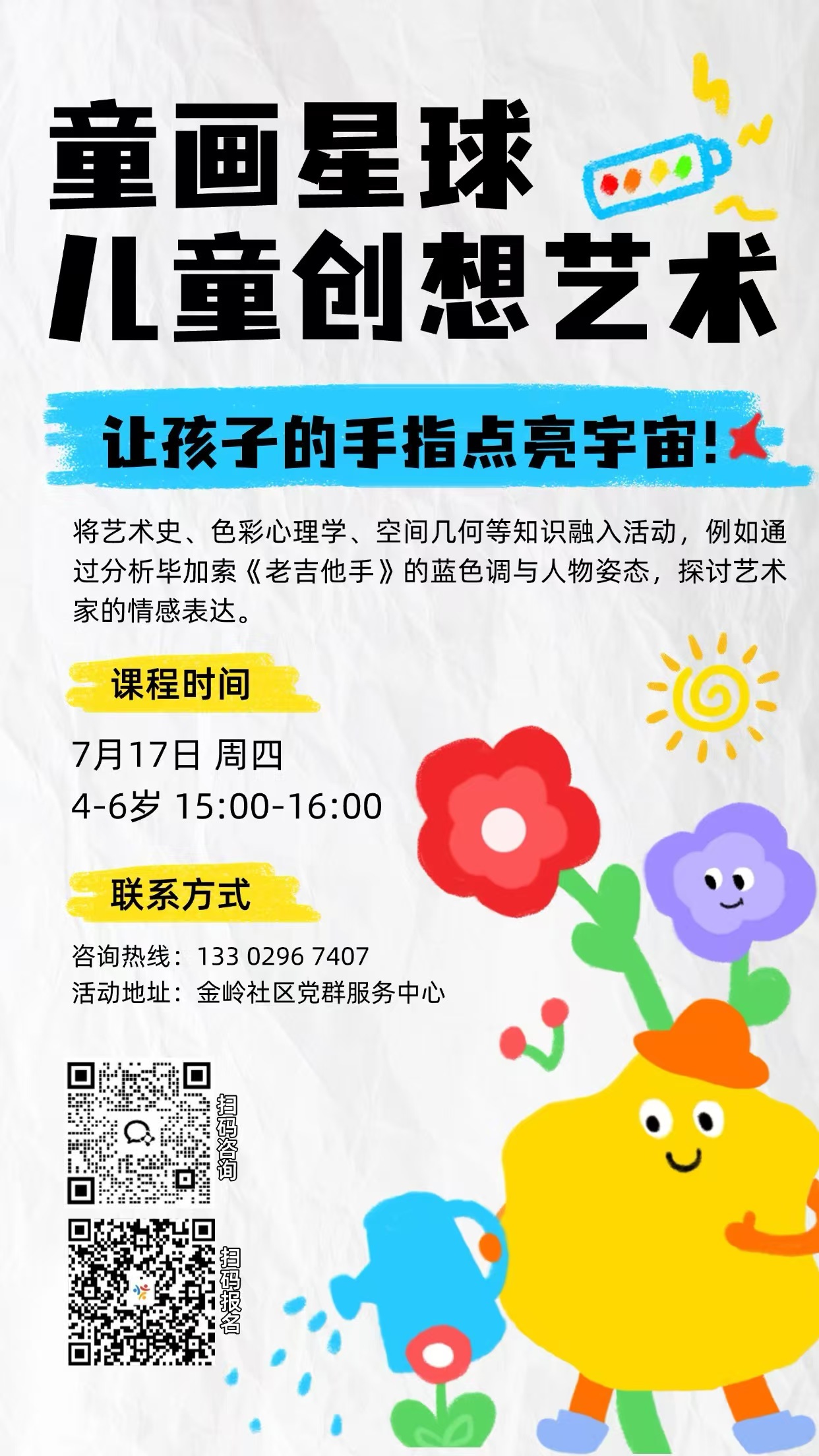 罗湖区家园网讯:金岭社区“童画星球”儿童创想艺术绘画班招募!