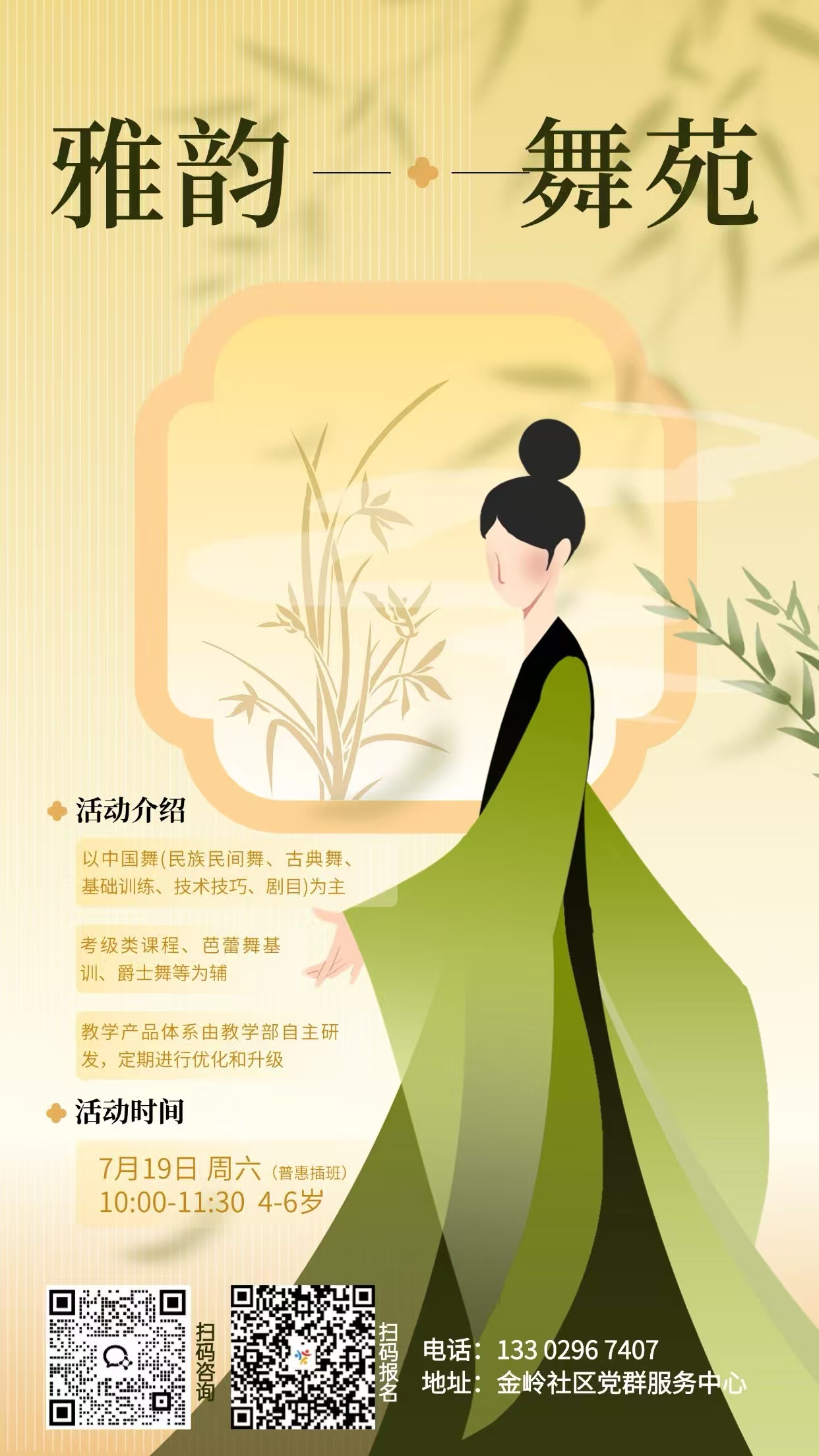 罗湖区家园网讯:金岭社区“雅韵-舞苑”中国舞暑假班招募!