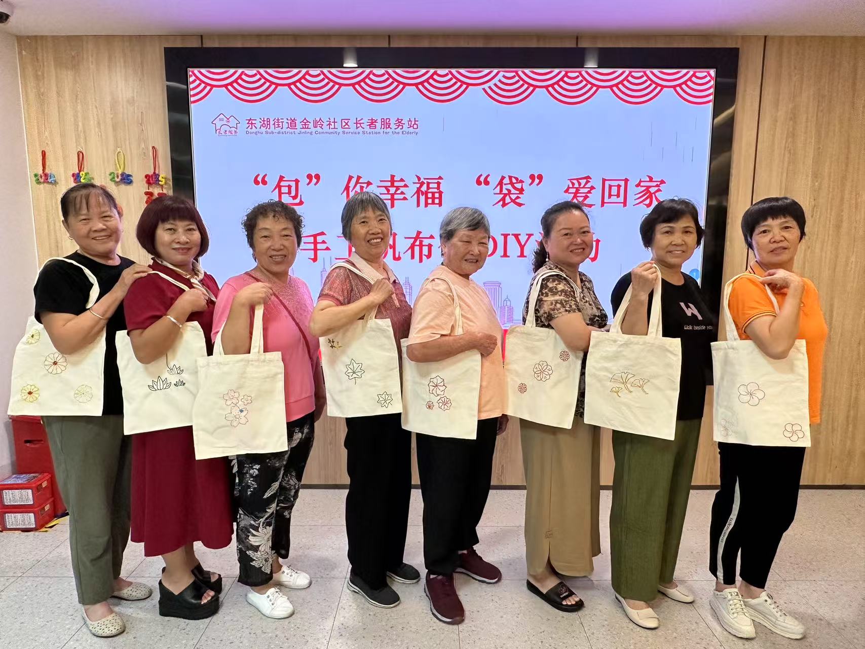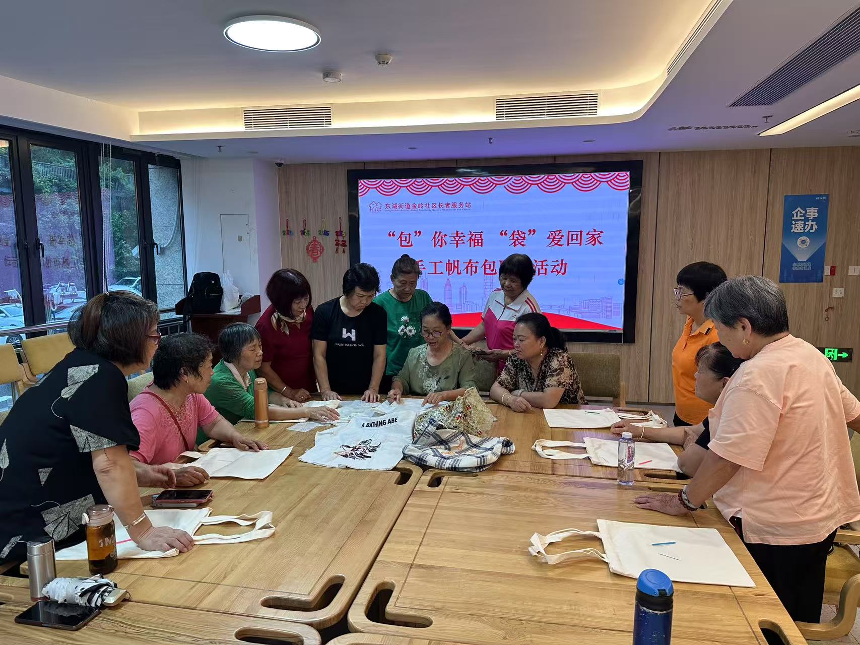 罗湖区家园网讯:2025年8月4日下午,金岭社区长者服务站开展“包”你幸福 “袋”爱回家—手工帆布包DIY活动。