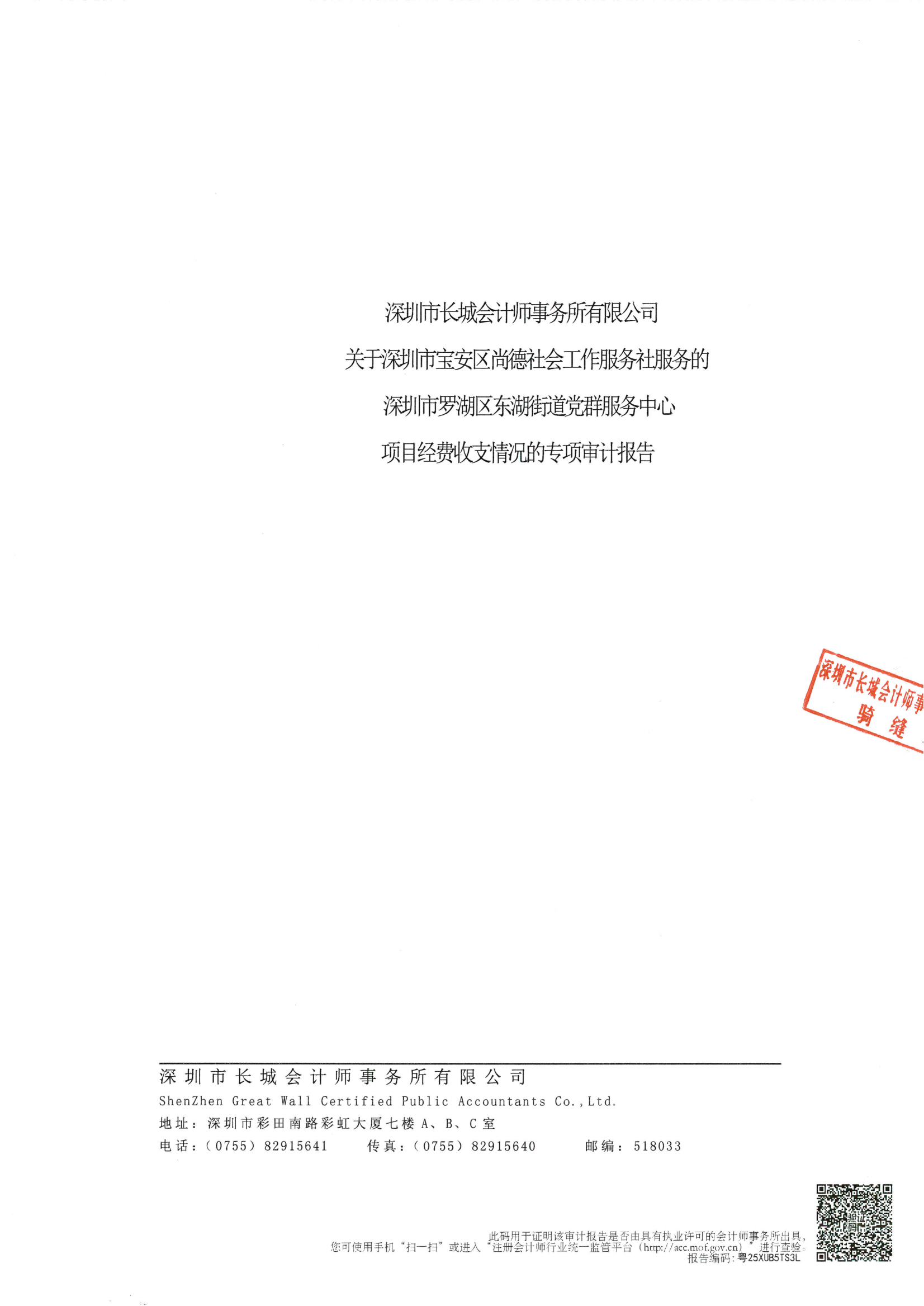 罗湖区家园网讯:罗湖区东湖街道金岭、金湖、梧桐山社区党群服务中心2024-2025年项目经费收支情况专项审计报告。