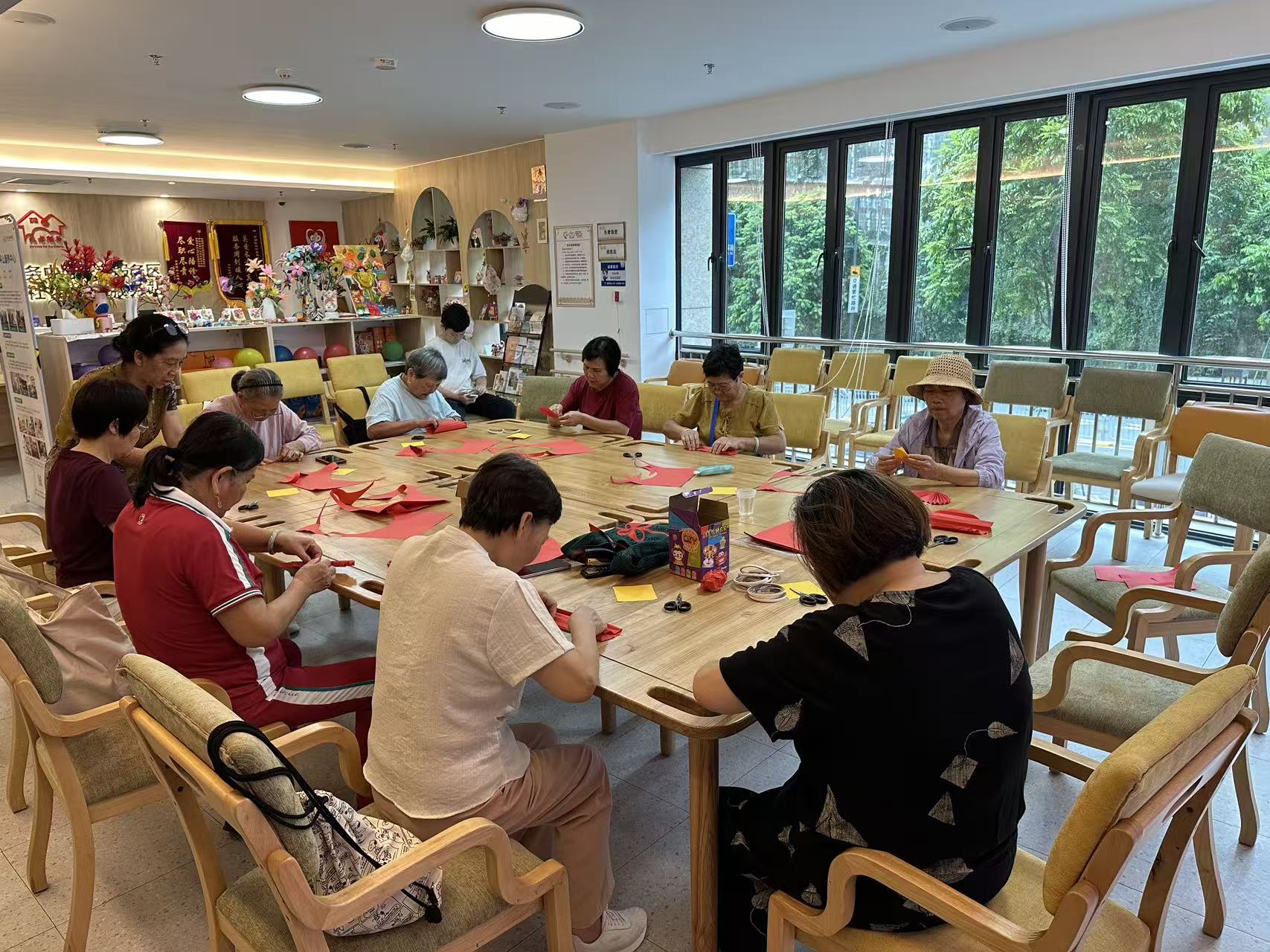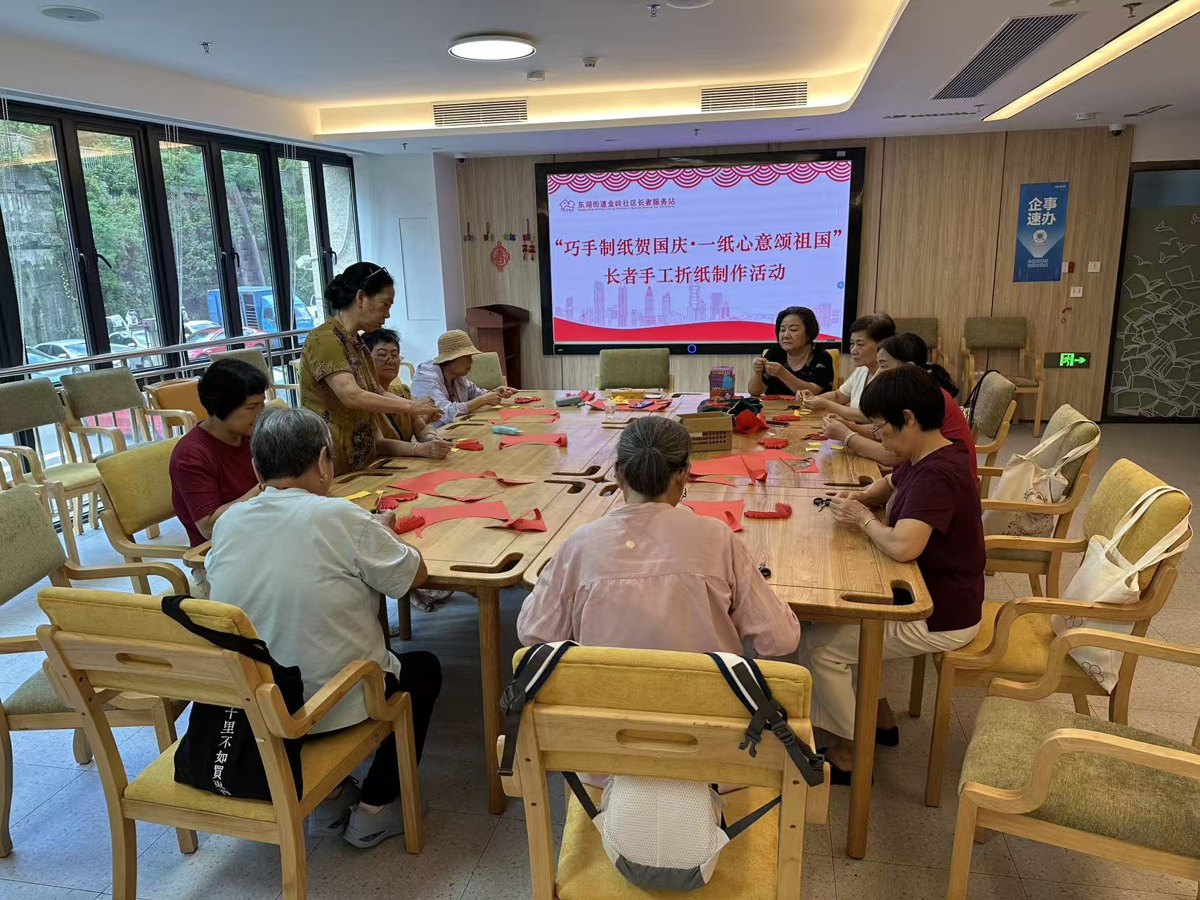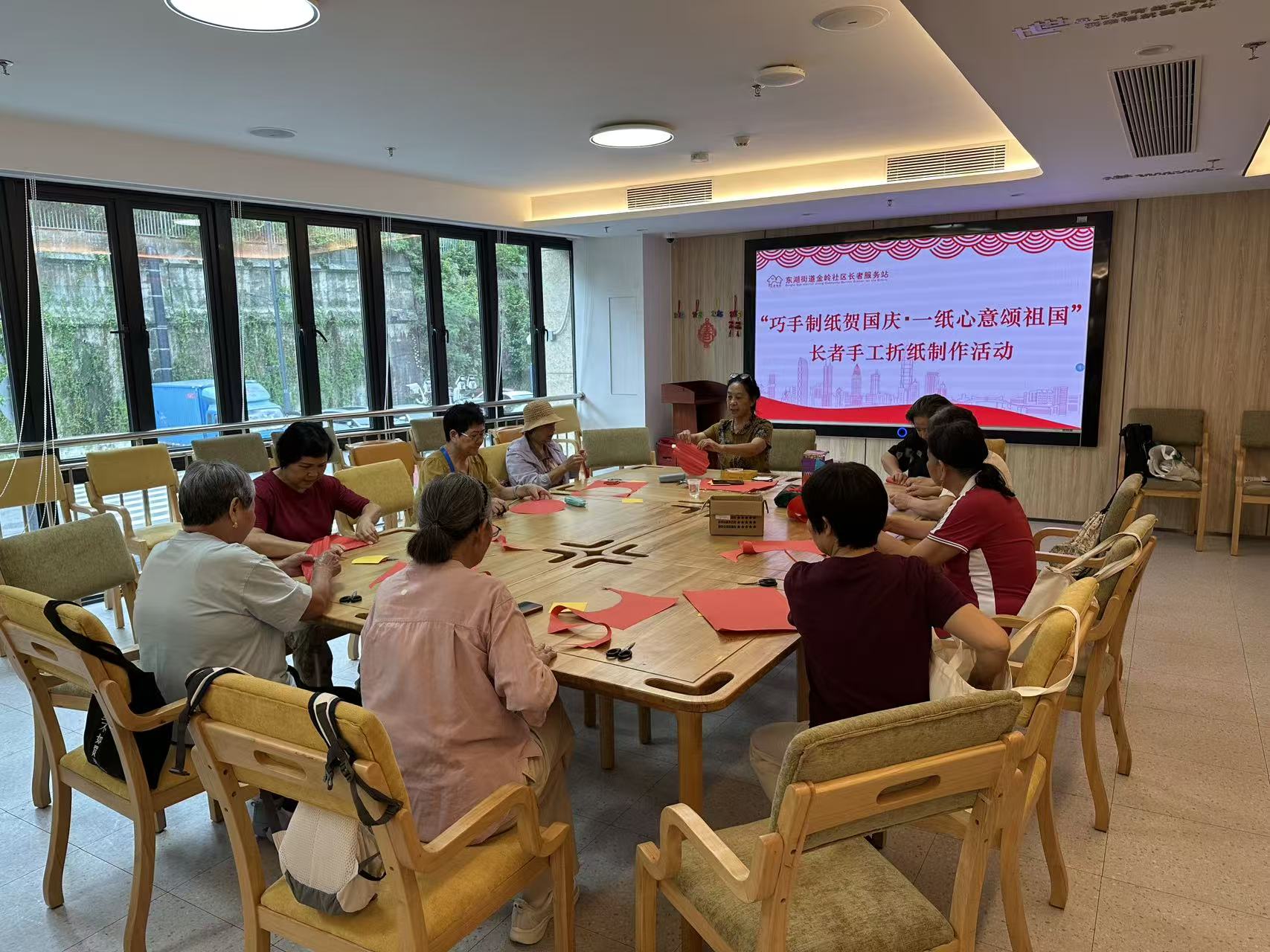 罗湖区家园网讯:2025年9月22日下午,金岭社区长者服务站开展“巧手制纸贺国庆·一纸心意颂祖国”长者手工折纸制作活动。