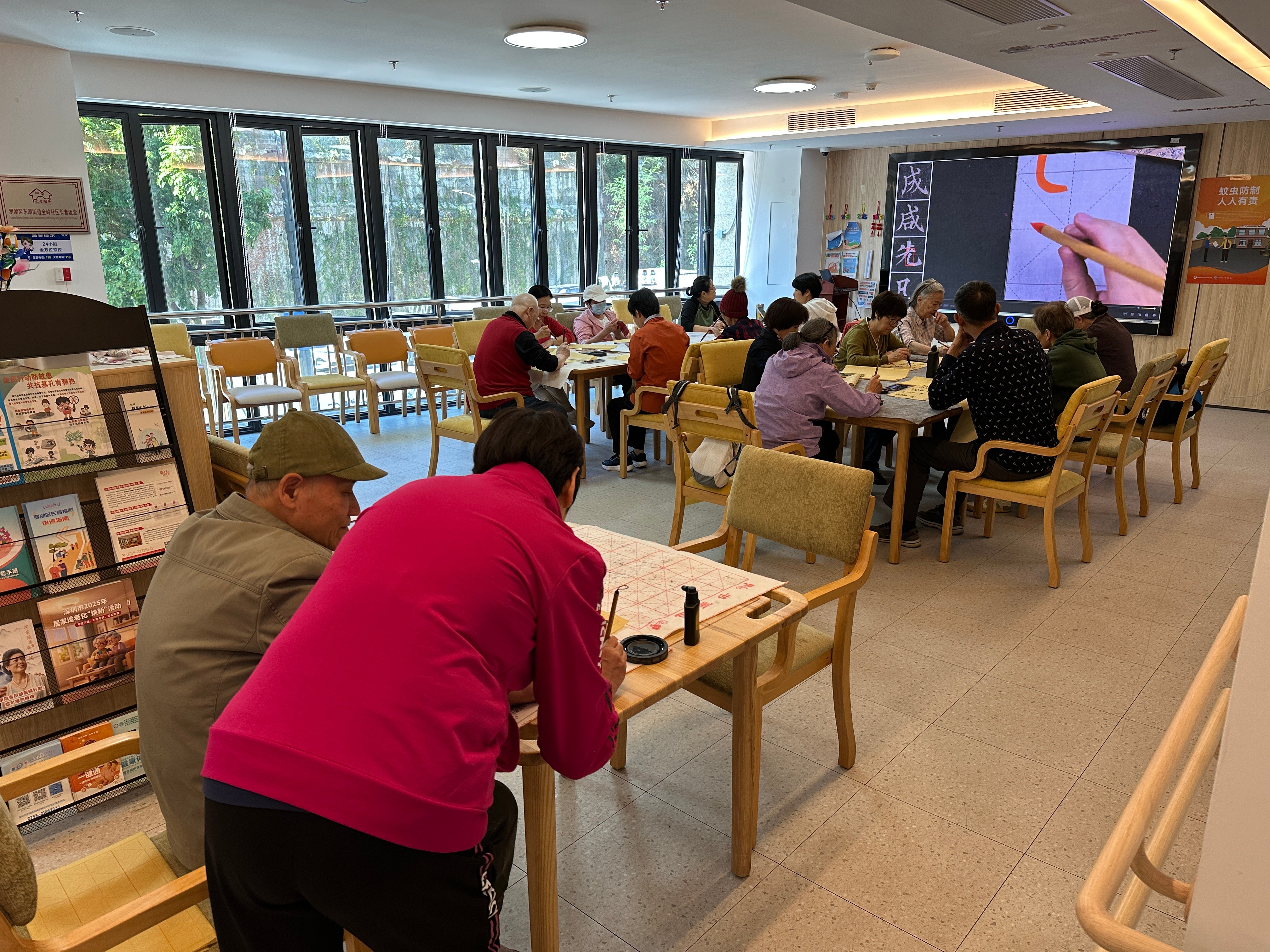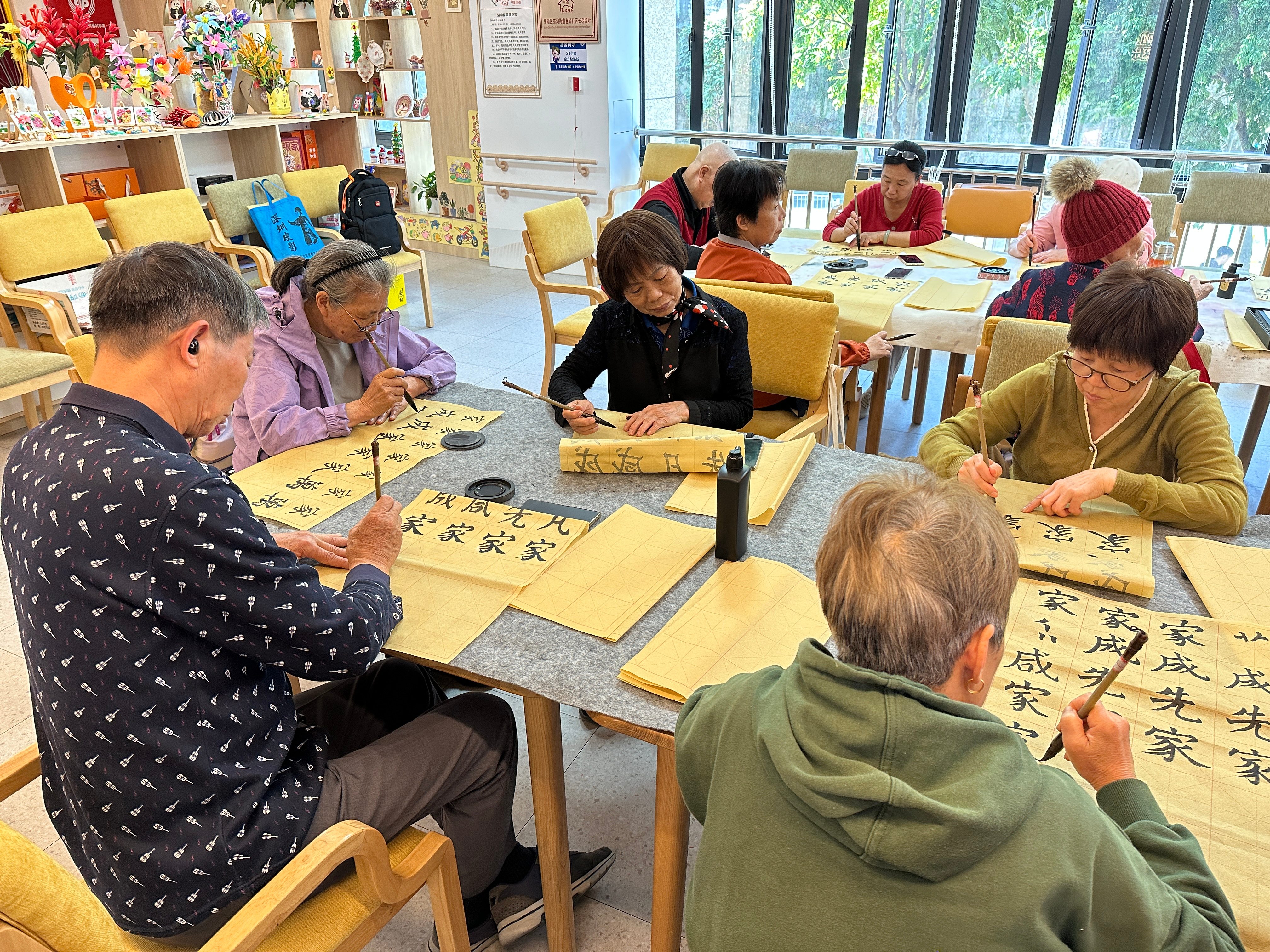 罗湖家园网讯:2025年11月25日,金岭社区长者服务站组织开展了笔墨飘香,乐享夕阳”金岭社区长者书法兴趣班活动。活动邀请专业书法老师授课,从握笔姿势、基本笔画教起,耐心指导楷书笔法与章法布局。课堂上,长者们专注练习、相互交流切磋,现场氛围浓厚。此次活动不仅丰富了长者晚年精神生活,涵养了文化心性,更搭建了邻里互动平台,传承中华优秀传统文化。