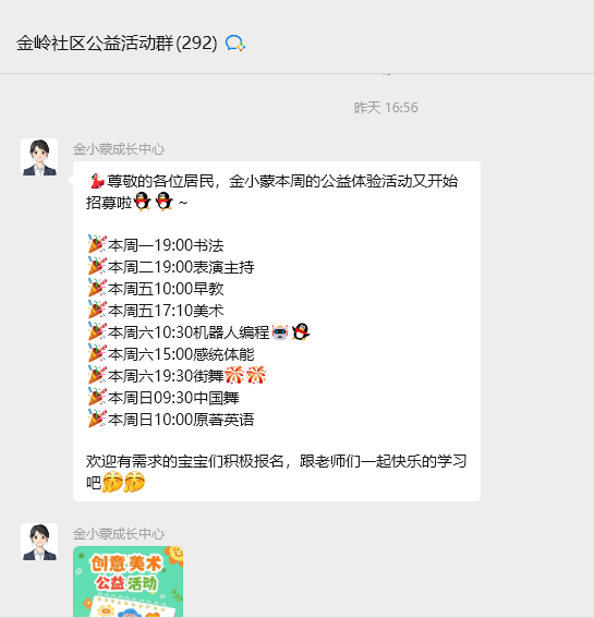 尊敬的各位居民,金小蒙本周的公益体验活动又开始招募啦!