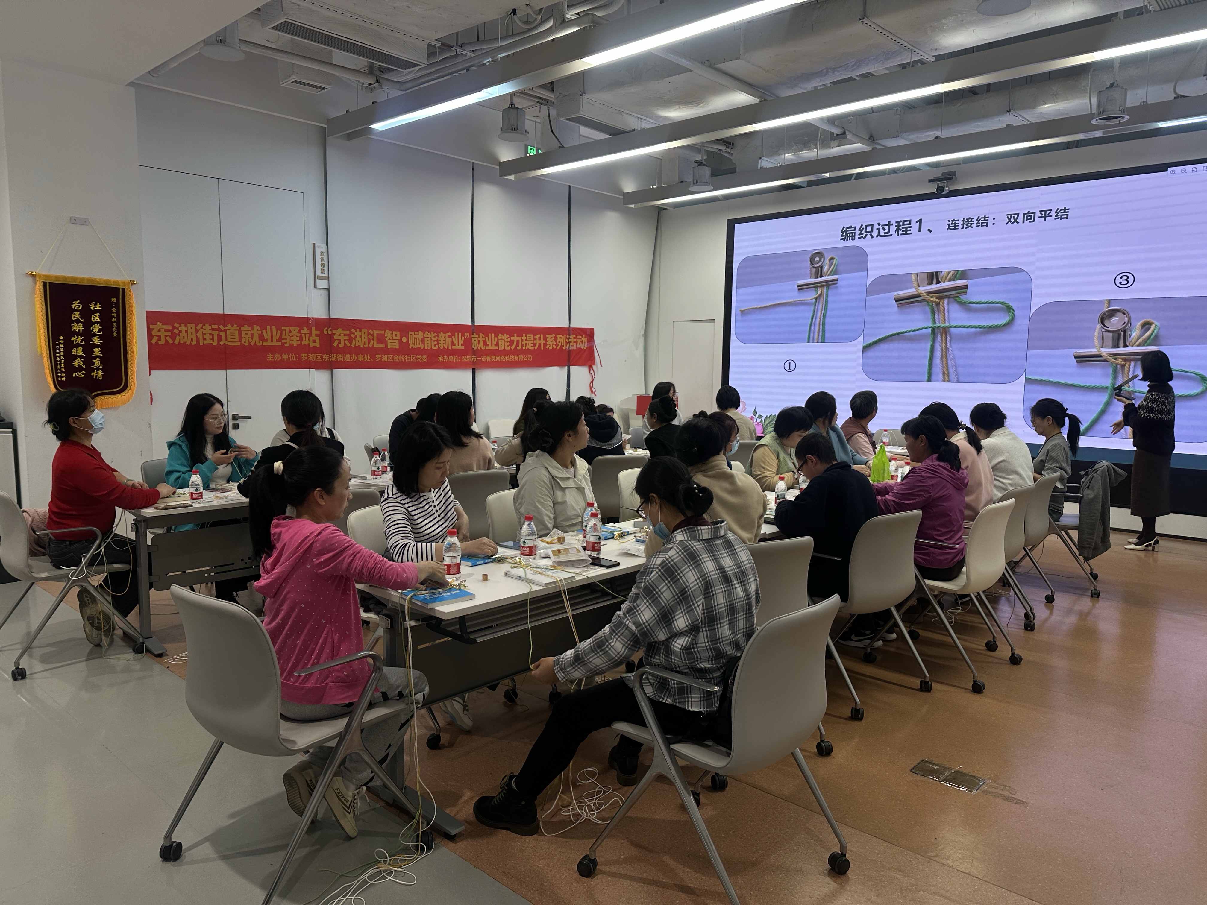 罗湖家园网讯:为丰富社区居民精神文化生活,提升手工实操能力,2026年1月15日,在东湖街道的指导下,金岭社区协助开展了指尖生花——手工编绳实操技能培训。活动现场,老师从基础绳结教起,耐心讲解平结、金刚结等编法,居民们认真学习、互相交流,在指尖翻飞间完成了精致的手绳作品。此次培训不仅让居民掌握了新技能,更增进了邻里间的沟通与情谊,营造出温馨和谐的社区氛围。