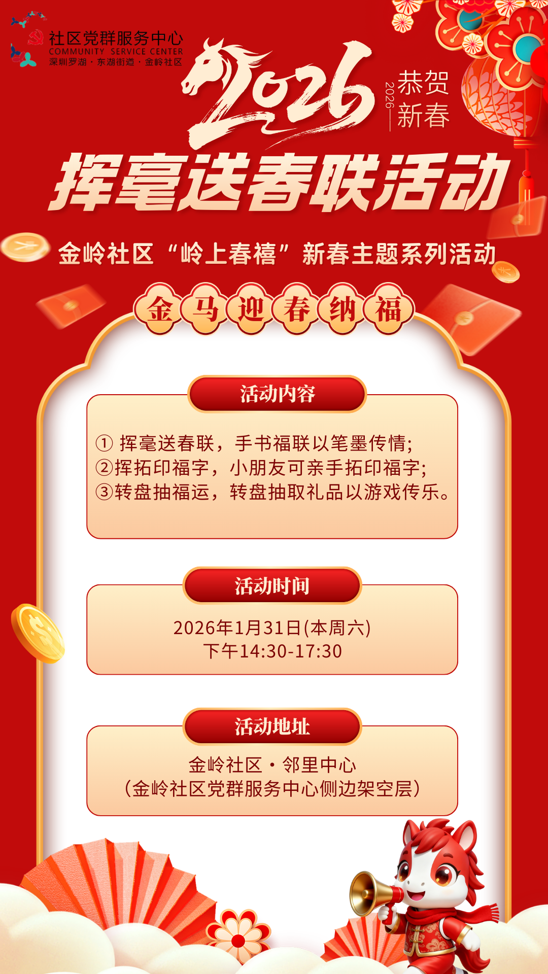 【活动通知】金岭社区“岭上春禧”新春主题系列活动之挥毫送春联