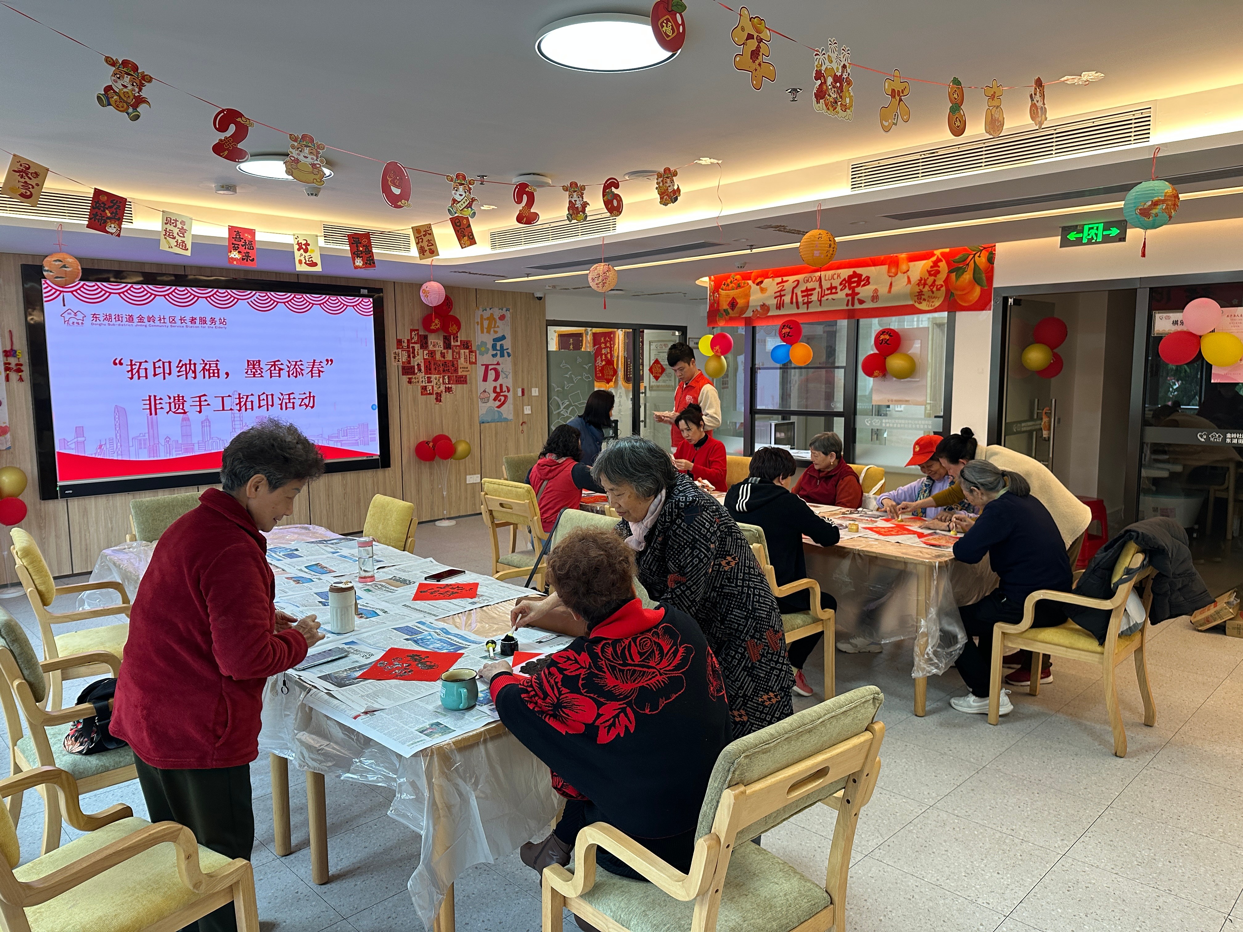 罗湖家园网讯:2026年2月9日,金岭社区长者服务站组织开展了“拓印纳福,墨香添春”金岭社区非遗手工拓印活动。活动中,居民们在工作人员指导下体验拓印技艺,拓出福字等新春纹样,在动手实践中感受非遗魅力。活动既丰富了居民新春文化生活,又传承了传统技艺,让大家在浓浓年味中感受传统文化的独特韵味。