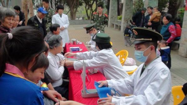 3月14日下午,武警七支队卫生队陈伟红队长率卫生队员一行,到金鹏社区文体广场开展3.5学雷锋月义诊活动。活动现场设置了量血压、外科、血型鉴定等服务项目,免费为社区居民检测,活动中为百余名居民进行了解答与诊断,深受居民的好评。