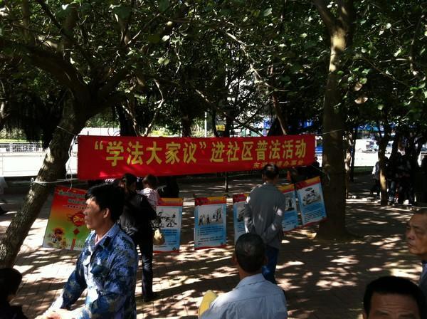 26日上午,我社区和东湖街道司法所在金鹏社区文体公园开展 “学法大家议”进社区普法活动。