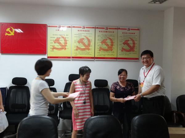 为庆祝中国共产党成立93 周年,激励广大党员深入贯彻党的十八大和十八届三中全会精神,扎实推进党的群众路线教育实践活动。市、区党代表团队成员高度重视,扎实有序地推进工作。7月9日上午在工作站二楼会议室,通过给社区党员群众上党课、慰问困难党员群众的形式,使党员群众真正感受到关怀和温暖。同时询问了解党员群众的困难和需求,送去了党组织和党代表团队对他们的问候与祝福,党员们对社区党组织和党代表团队的关怀表示感谢,纷纷表示将尽已所能,一如既往地支持社区的工作。
