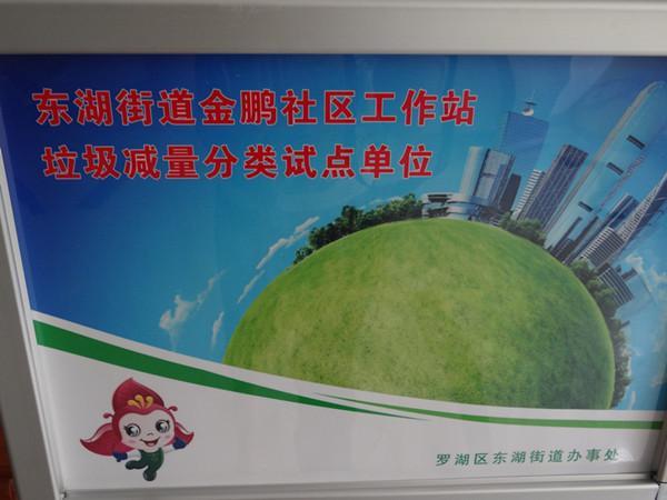 金鹏社区工作站是东湖街道垃圾减量分类试点单位。金鹏社区工作站垃圾分成两类,分别是可回收物收集点、有害垃圾收集点。分类投放收集的作业流程是:每天用自备垃圾袋,分别收集分类垃圾。保洁人员负责对可回收垃圾进行二次分拣,将可回收物统一送至废旧物资收购站。不可回收垃圾由保洁员送到各指定的垃圾收集点,由各区环卫部门统一送到垃圾处理场进行处理。