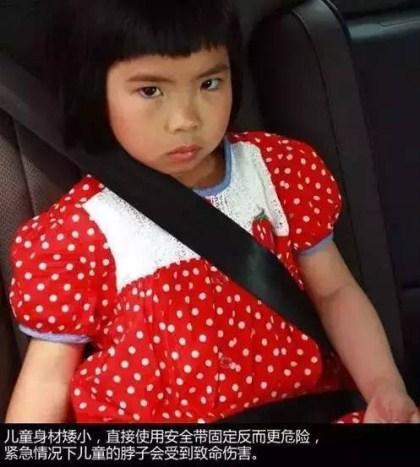 对于儿童乘车来说,如果直接使用安全带固定不但不够安全还会起到负面影响,因为他们的身高比成年人要矮很多,所以安全带会从他们的脖子经过,紧急情况下他们幼小的颈椎会受到致命伤害。