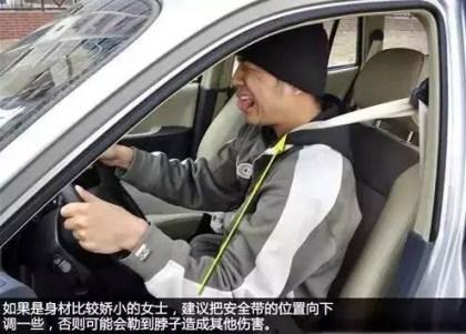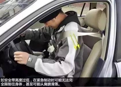 正确使用安全带的姿势 1、上车系安全带记得调整高低
