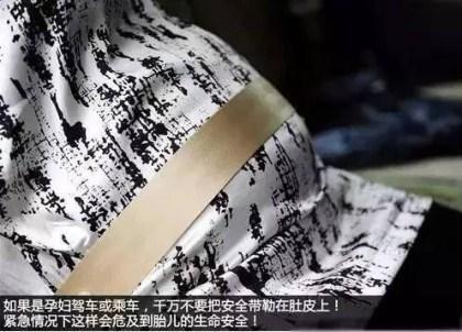 对于怀孕的准妈妈来说,千万不要把安全带勒到肚子上,这样非常危险!系到胯骨上,可能会有一些不舒服,但会比较安全。