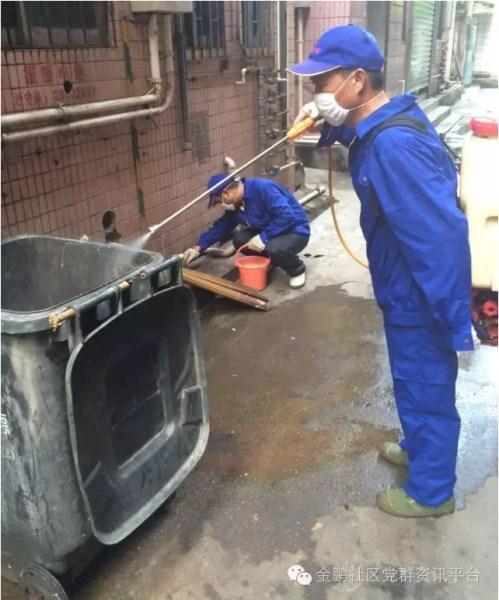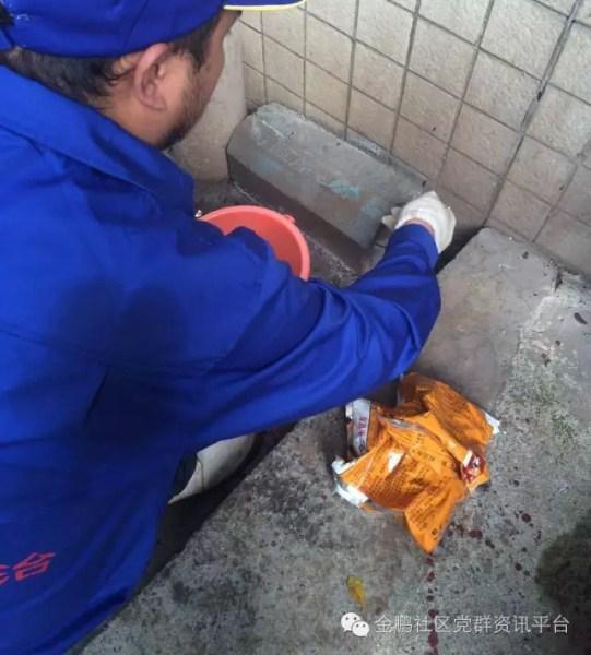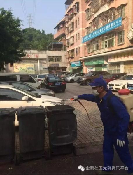 8月9日上午7点40分开始,中大合顺有害生物防治公司来到港鹏新村对楼道、垃圾桶周边及蚊虫滋生地喷洒灭蚊灭蝇的药水,并放置了老鼠药,预防和控制蚊蝇蔓延繁殖。