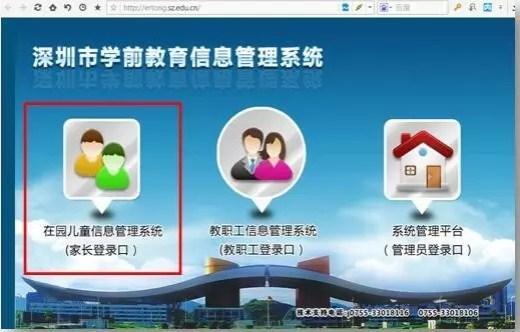 进入深圳市学前教育信息管理系统http://ertong.sz.edu.cn/ ,选择“在园儿童信息管理系统(家长登陆口)”