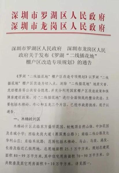 深圳市罗湖区人民政府 深圳市龙岗区人民政府关于发布《罗湖“二线插花地”棚户区改造专项规划》的通告