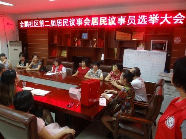 7月11日上午,金鹏社区第二届居民议事会居民议事员选举大会在金鹏社区二楼会议室举行。