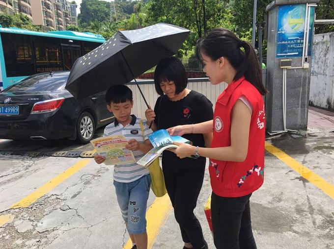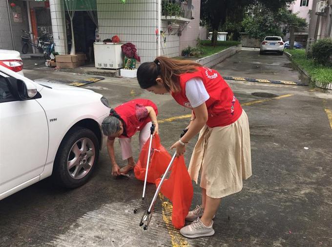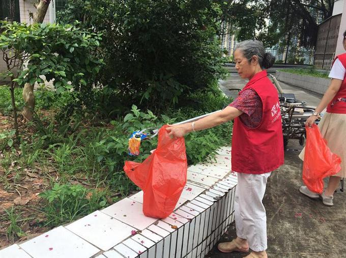 7月17日工出动10名工作人员及义工,分别到辖区进行卫生清理,宣传文明出行,现场派发文明资料30份。