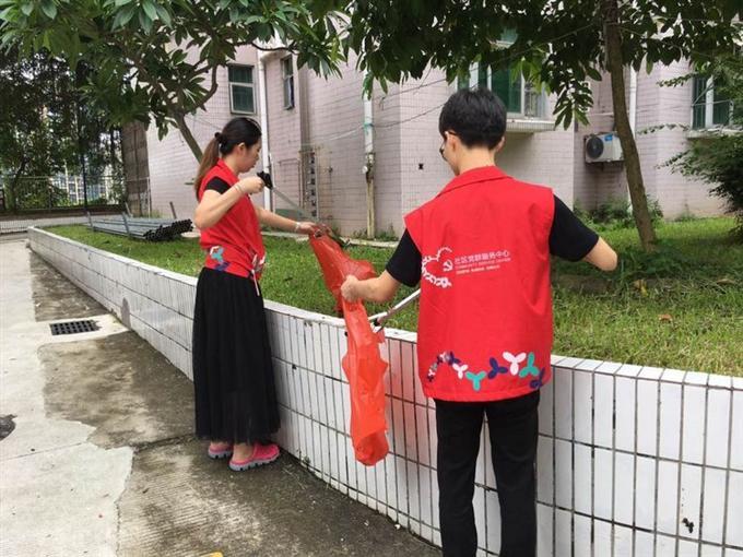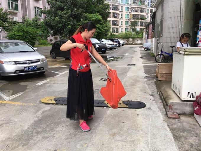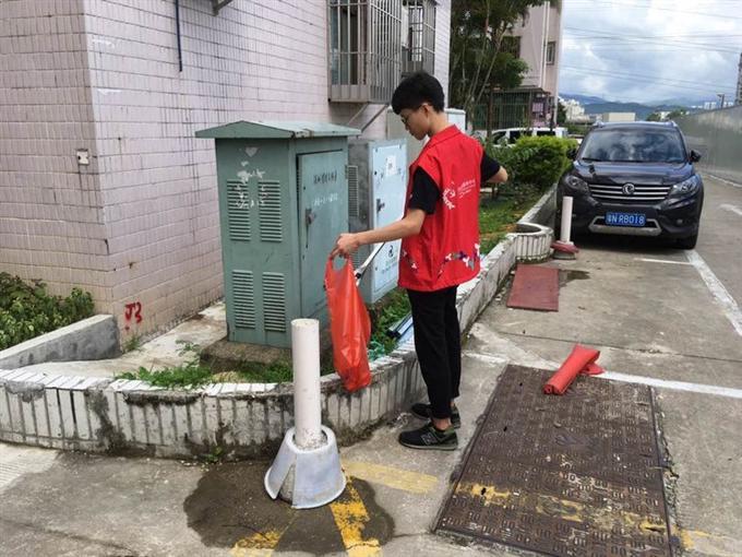 在小区内进行日常清理