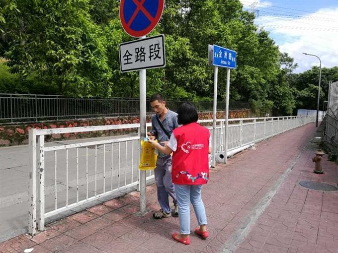 7月24日出动10名工作人员和义工,分别到辖区进行卫生清理,宣传文明出行,现场派发文明资料30张。
