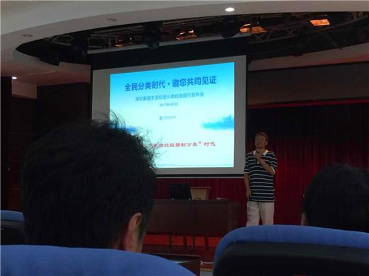 2017年7月25日下午,东湖街道办举办“全民分类时代,邀您共同见证”家庭生活垃圾分类投放指引发布会,金鹏社区多名社区工作人员和义工参与了此次发布会。