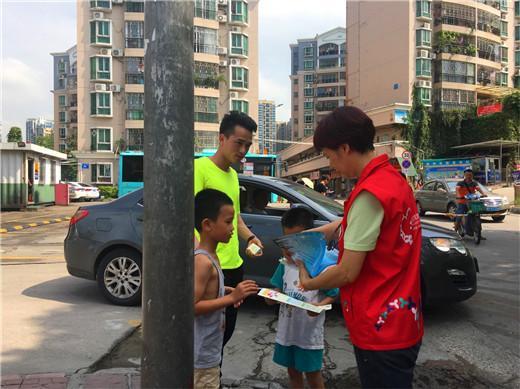 7月26日出动10名工作人员和义工,分别到辖区进行卫生清理,宣传文明出行,现场派发文明资料30张。