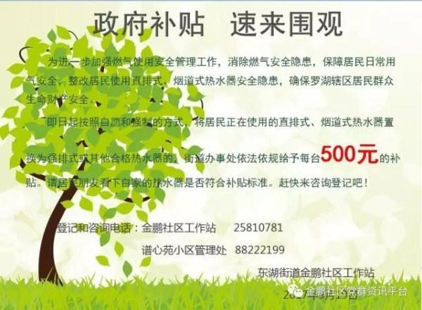 即日起置换直排式、烟道式热水器有500元的政府补贴。
