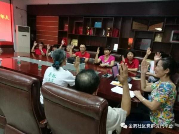 新一届的金鹏老协班子成员表示:将以服务老人为理念,坚持党政主导,全民关怀,积极开展社区老年协会各项为老服务一系列的工作,使今后的老协工作提高到一个新的水平。