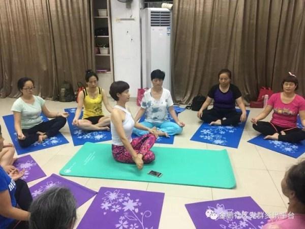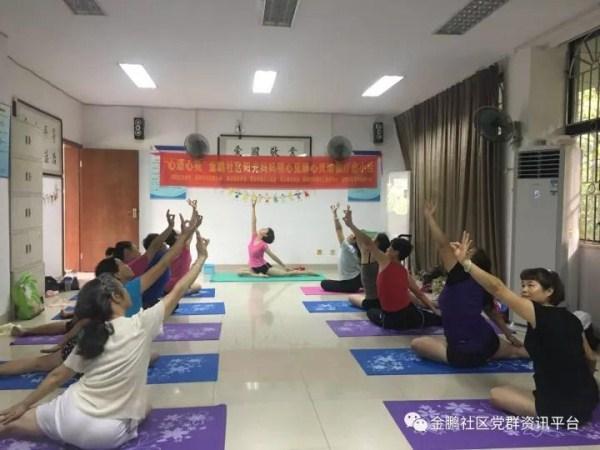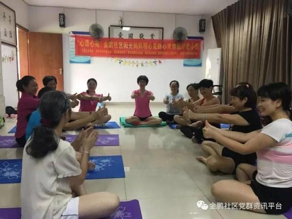 2017年10月24日下午,金鹏社区党群服务中心组织开展的明心见静瑜伽疗愈小组进行到最后一节。