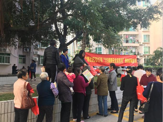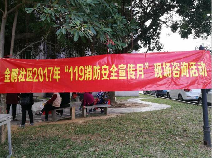 2017年11月22日在谱心苑开展了金鹏社区“119消防安全宣传月”现场咨询活动