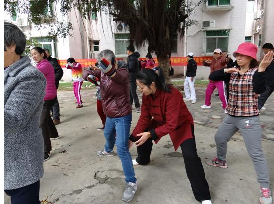凛冽的寒风并没有吹散学员们的学习热情,小小的谱心苑小广场站满了前来参加培训班的居民们,“马步要扎牢,膝盖与脚尖方向一致,握拳不能太紧,动作要缓慢、有力,郑老师深入浅出的讲解太极拳套路的基本功步法,学员们跟着老师认真的学习起来。
