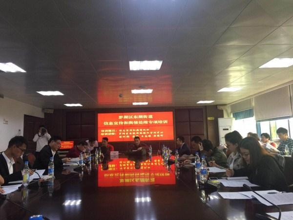 培训内容为信息撰写的规范和边界;信息报送的程序;罗湖政务网、罗湖家园网、社区子网的区别;舆情的处理和应对;信息上传的技术问题;各街道遇到的常见问题等。