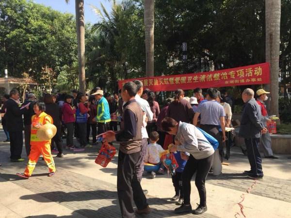 3月21日下午,东湖街道城区治理办在梧桐山文体公园开展大型爱卫宣传活动,并发放了宣传单张及小礼品。