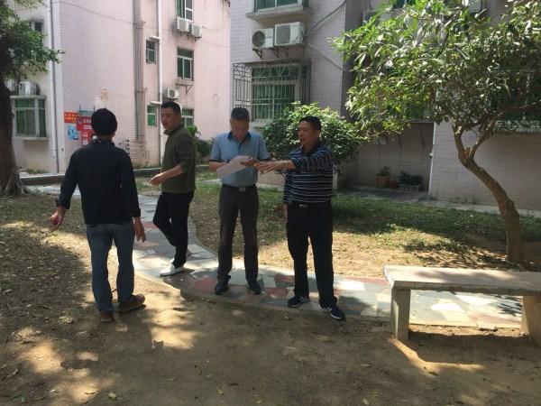 4月10日下午,东湖街道发展更新部王忠东同志一行到金鹏社区谱心苑小区勘察