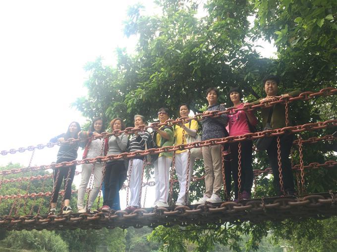 负责活动的社工在讲解整个活动的流程及安全纪律后,便带领居民们从走绿道开始。体验沿湖风光,步行游玩,一路欣赏大自然赋予的美丽风景。铁索桥上,妇女们欢声笑语,畅说着心中的愉悦,摆出可爱的Pose。伴随着大家的欢乐镜头,所有人来到了大草坪,拉起了主题横幅,铺好垫子,开启本次活动的下一个主题。