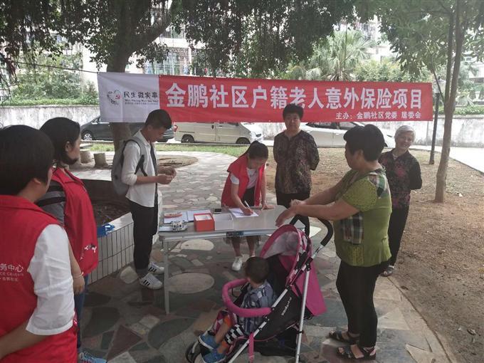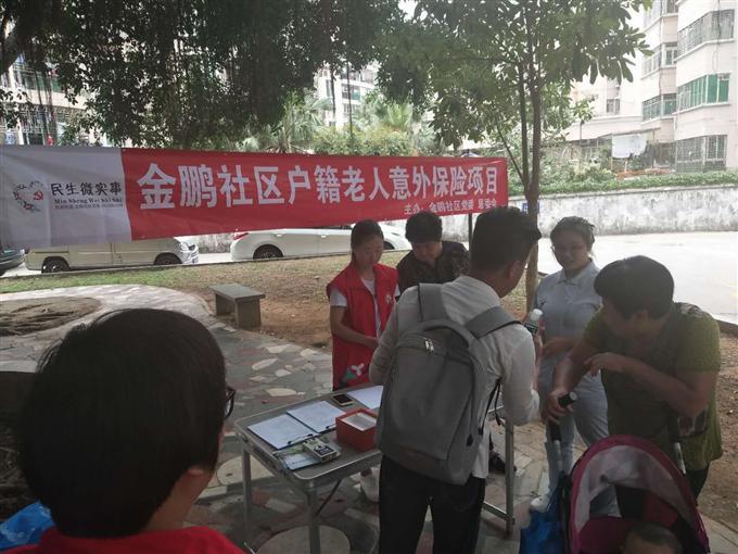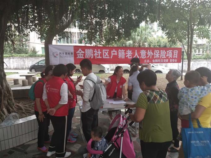 4月25日下午,金鹏社区开展民生微事实----老人户籍保险项目宣传活动,