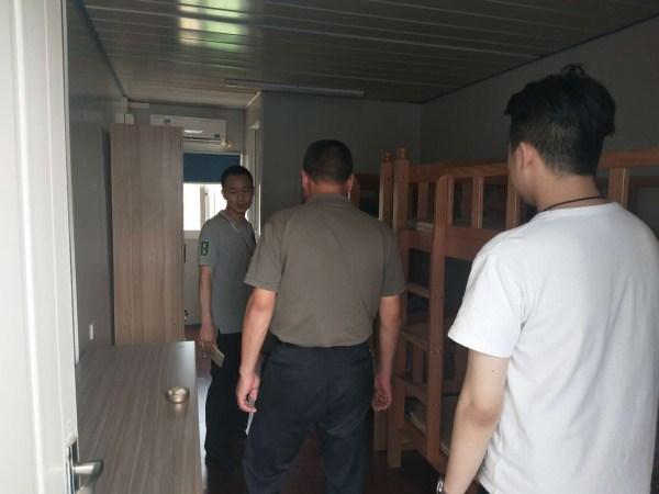 5月3日上午,街道公共安全办的工作人员温伟峰和陈俊杰与我社区安全专干一同进行安全排查工作,检查了辖区棚改片区天健集团临时办公场地和工作人员宿舍。