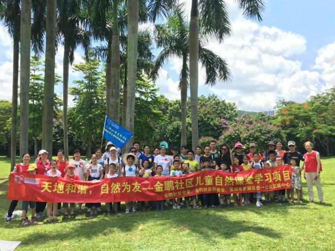 2018年5月26日,在金鹏社区党委支持下,深圳市罗湖区合一公益联合金鹏社区党群服务中心,开展民生微实事“和谐天地,自然为友”金鹏社区儿童自然学习项目活动,本次活动组织社区20对亲子家庭到东湖公园进行户外自然观察,走出课堂,走进大自然,放松身心。