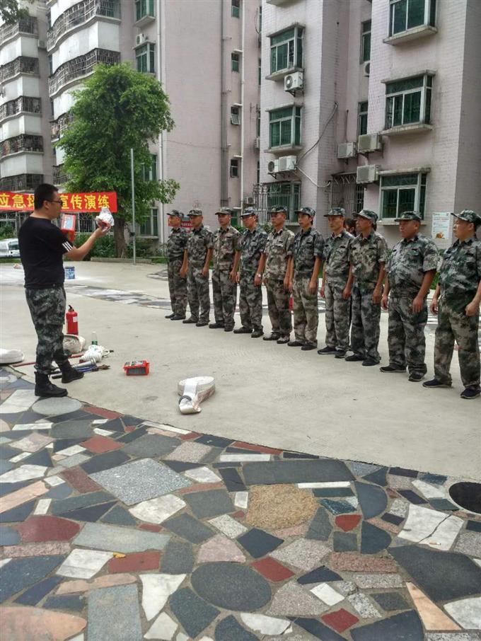 2019年7月2日下午众鑫居物业管理有限公司义务消防队,联合金鹏社区工作站和鹏岭社区警务室在谱心苑小区举行第三季度反恐演练和消防演习培训,参加演习人员三十余人。