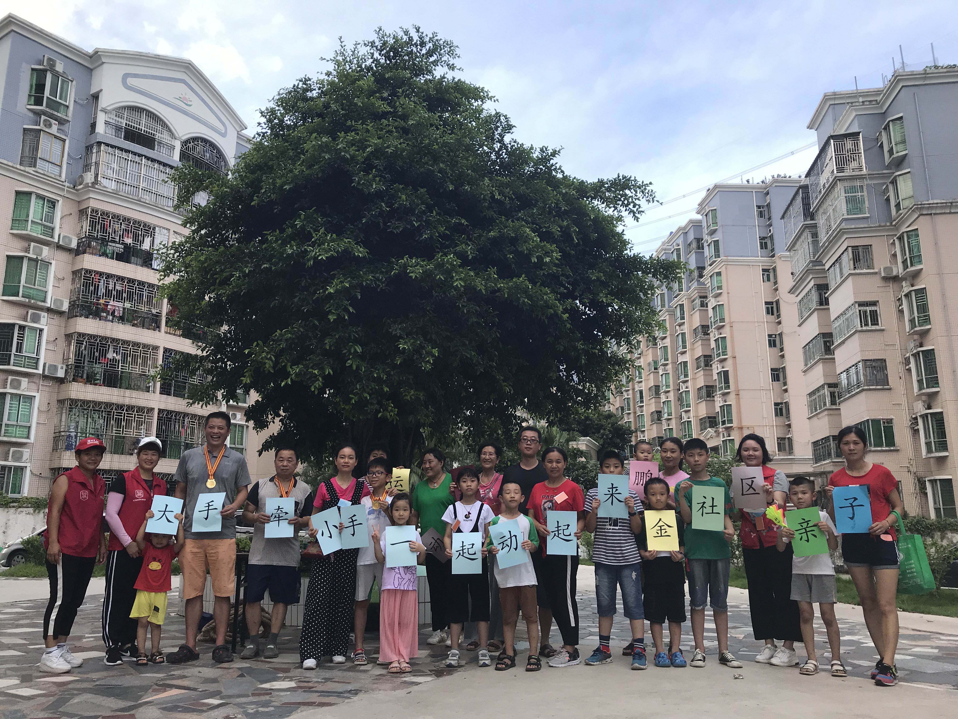 2019年7月6日下午,在金鹏社区谱心苑小区广场,亲子运动会火热开启。4月份的儿童运动会、长者运动会受到了广大居民的好评,居民们踊跃参与。于是,亲子运动会也在居民们的大力支持下顺利展开。