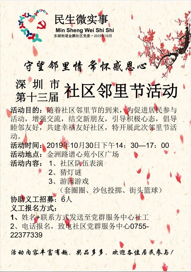 【活动预告】守望邻里情 常怀感恩心--深圳市第十三届社区邻里节