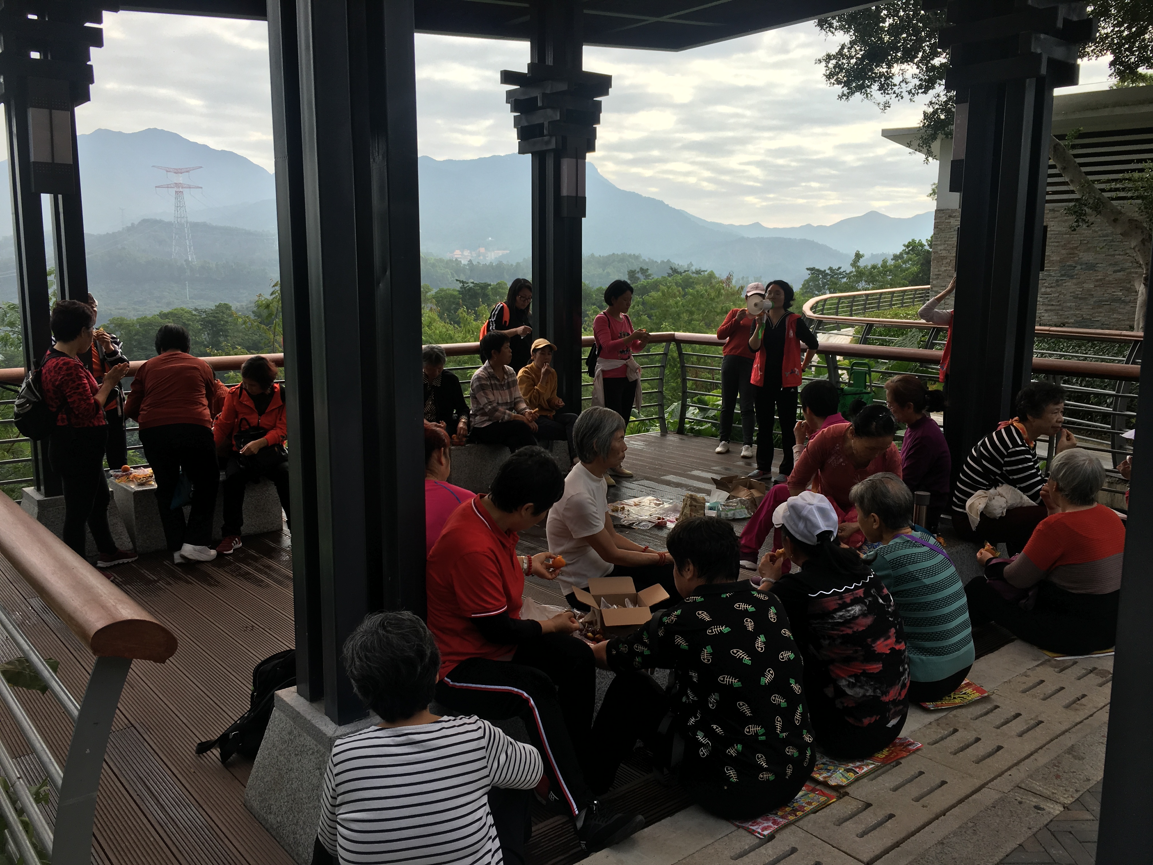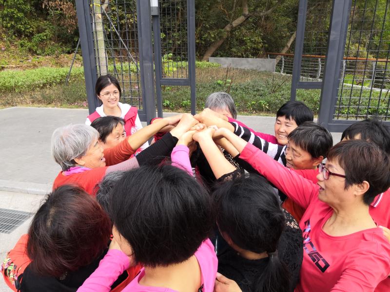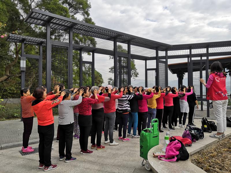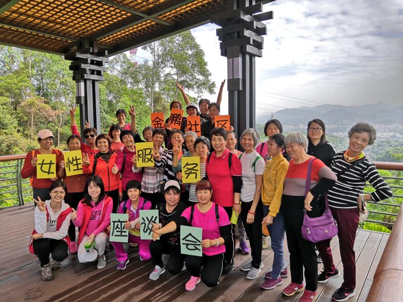 2019年12月18日上午,金鹏社区党群服务中心邀请社区近30名女性前往淘金山绿道。希望居民在保持健康运动方式的同时,与邻里间有更好的沟通机会。在休息期间,社工带领居民进行游戏互动。